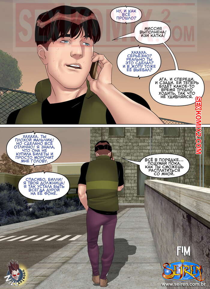 Порно комикс Сука в западне. Часть 1. Эпизод 2. Seiren Парнишка хорошенько отъебал сучку и стал предлагать ей еще один билет за трах с ним, но она стала отказываться.. Тогда парень собрался уходить, но сучка все таки согласилась поебаться с ним, но на этот раз пацан хотел ее задницу..