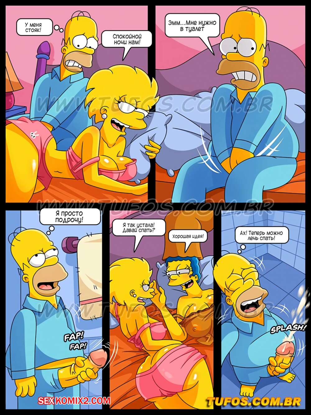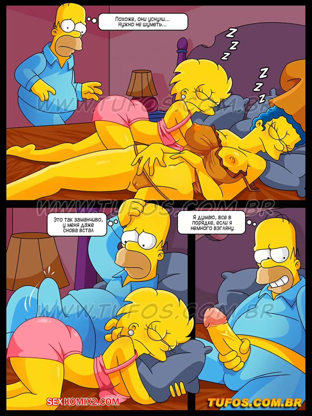Порно комикс Симпсоны. Часть 19. В постели родителей Лиза перед сном решила надеть свою сексуальную пижаму и отправилась к папочке, пока мама спала. Гомер не смог справиться с возбуждением от вида Лизы, поэтому с большим удовольствием оттрахал дочурку.