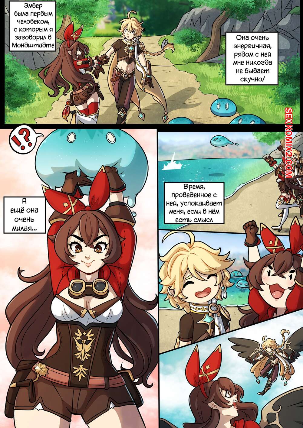Порно комикс Путеводитель к сердцу Тейвата. Эмбер. Kinkymation. Парень и девушка лучшие друзья, они все делаю вместе, но рано или поздно их дружба должна была привести к сексу, вот именно это и произошло.