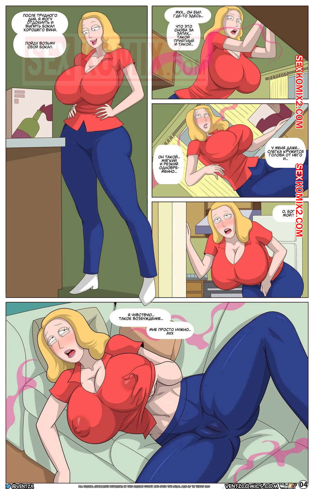 Порно комикс Рик и Морти. Эксперимент Морти 9. Arabatos. Рус. Морти притащил из другой мульти вселенной какой-то спрей, но как всегда не разобрался как он работает и теперь. И теперь все девушки и женщины хотят с ним трахаться.