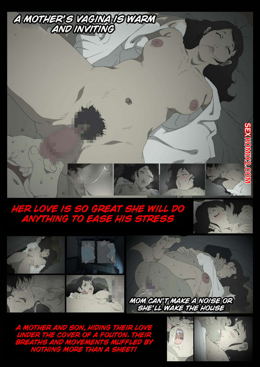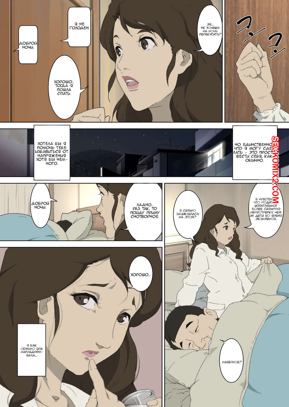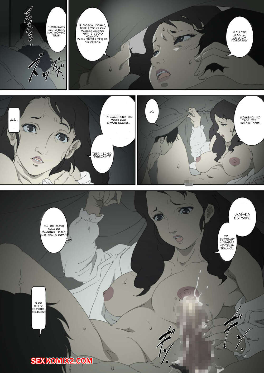 Порно комикс Инцест. Ночь у матери Парнишка приехал в гости к своей горячей маме. Глядя на неё он стал возбуждаться и никак не смог сдержать себя в руках и решил её выебать.