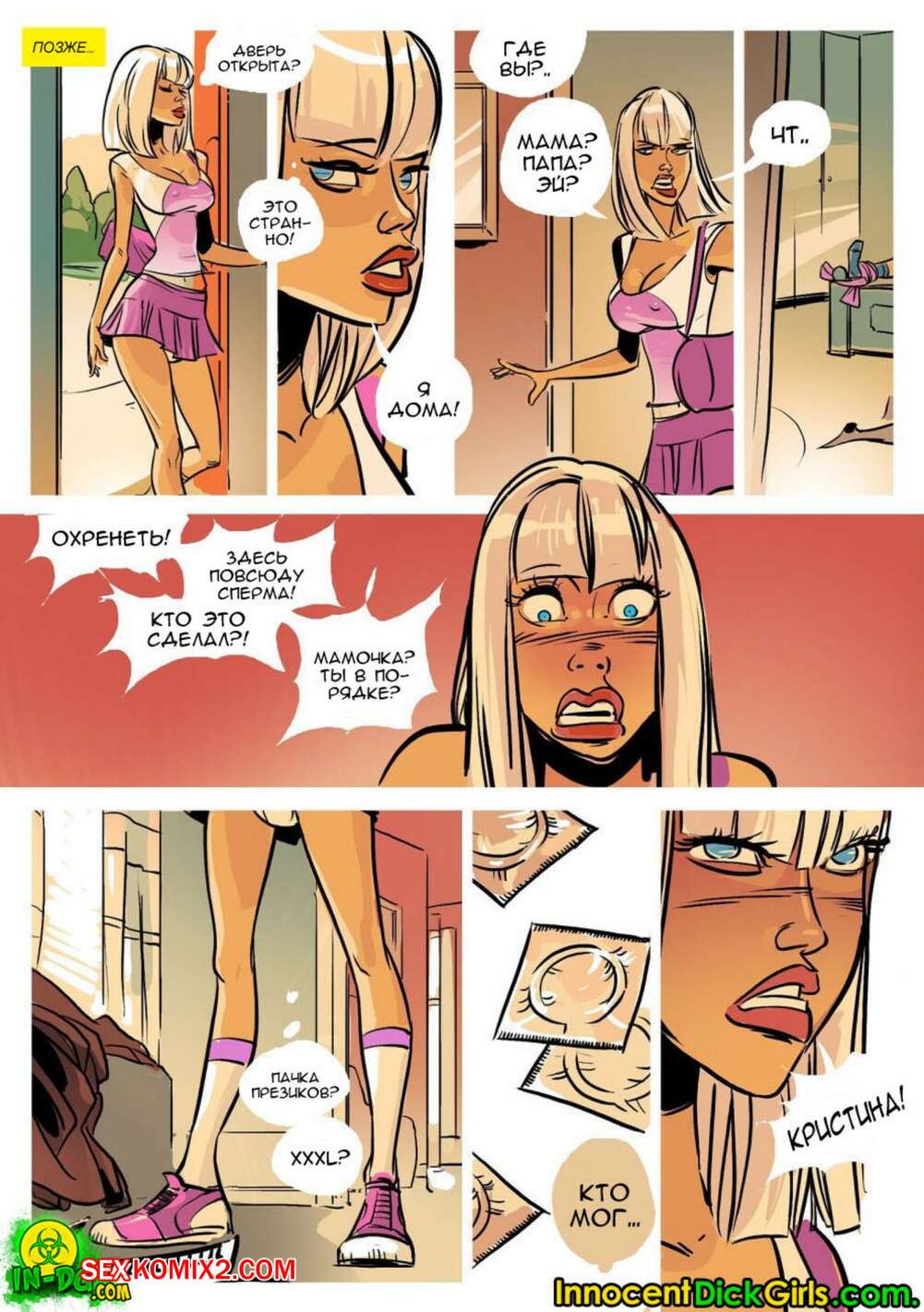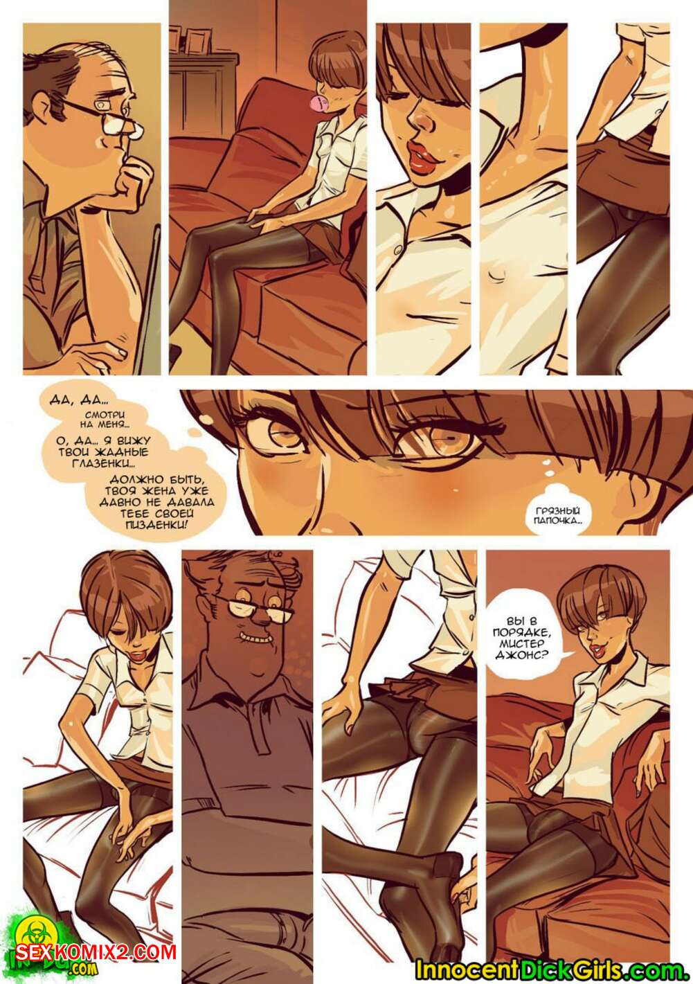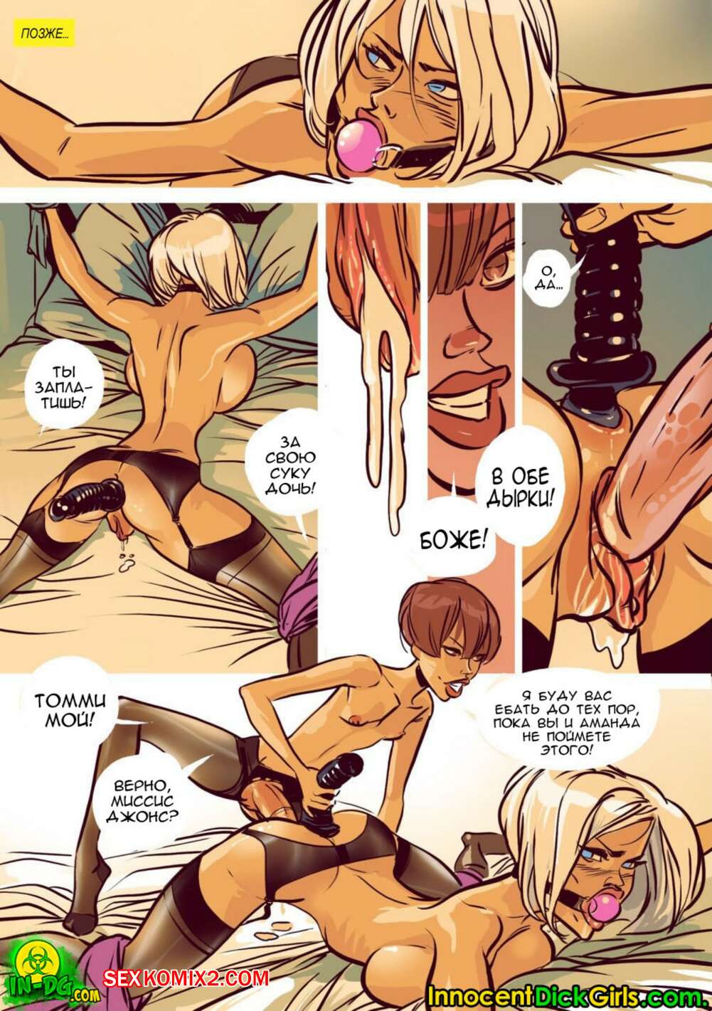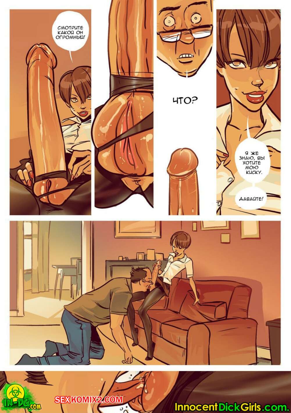 Порно комикс Футанари. Семейные ценности. InnocentDickGirls С утра красотке с большим хуем захотелось расслабиться перед работой. Она связала на кровати своего мужа и начала трахать его в рот, а затем залезла на него сверху и стала ебаться в жопу.