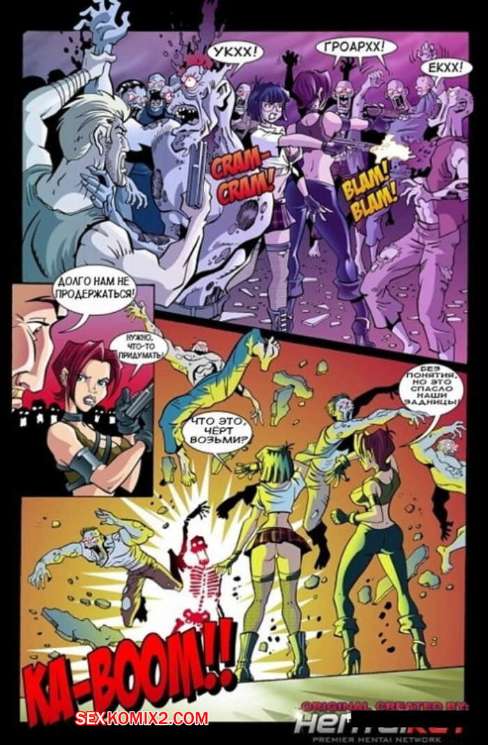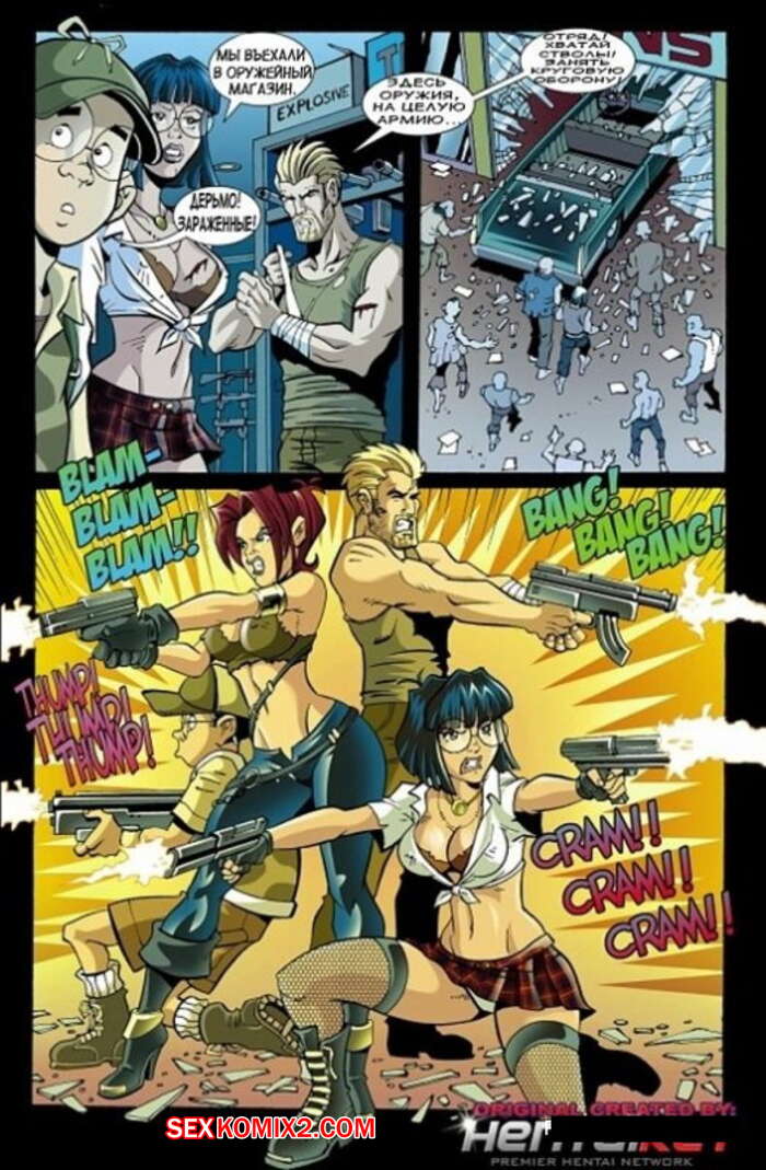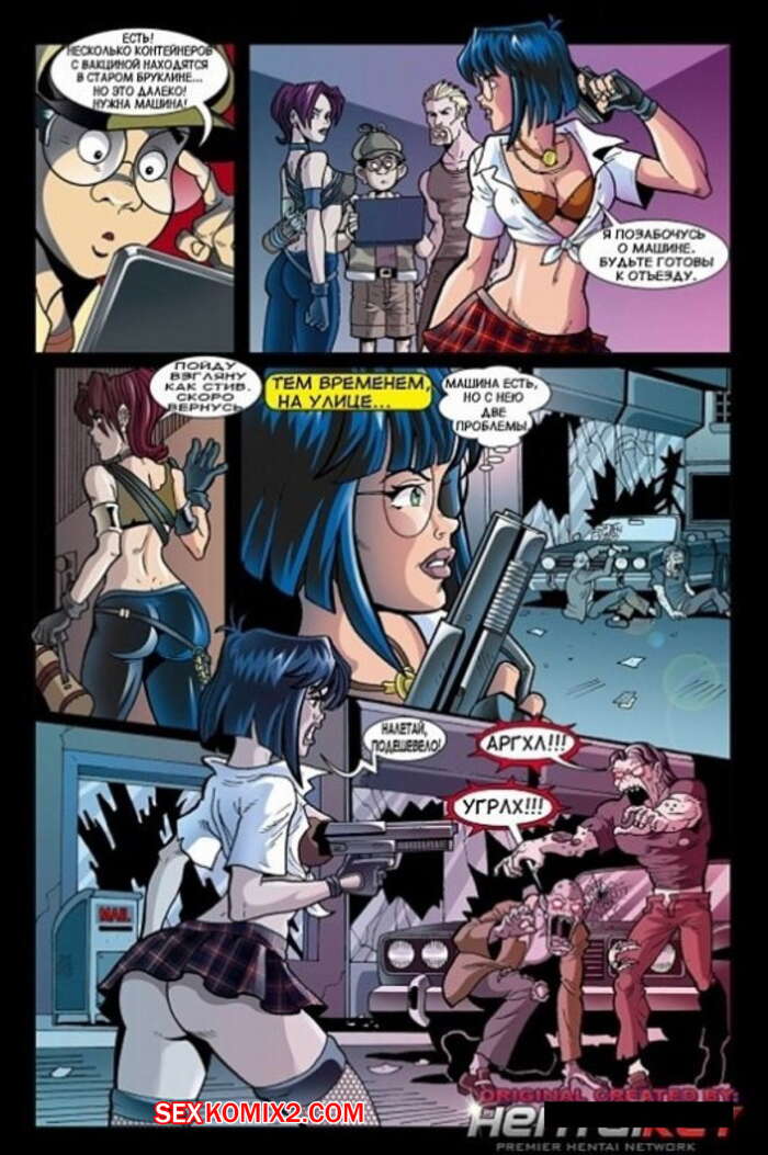 Порно комикс Вирус. Часть 2 На жителей город распространился вирус и они почти все превратились в зомби. Мужики стали бегать по городу, одержимые желанием найти аппетитную соску и хорошенько ее выебать.