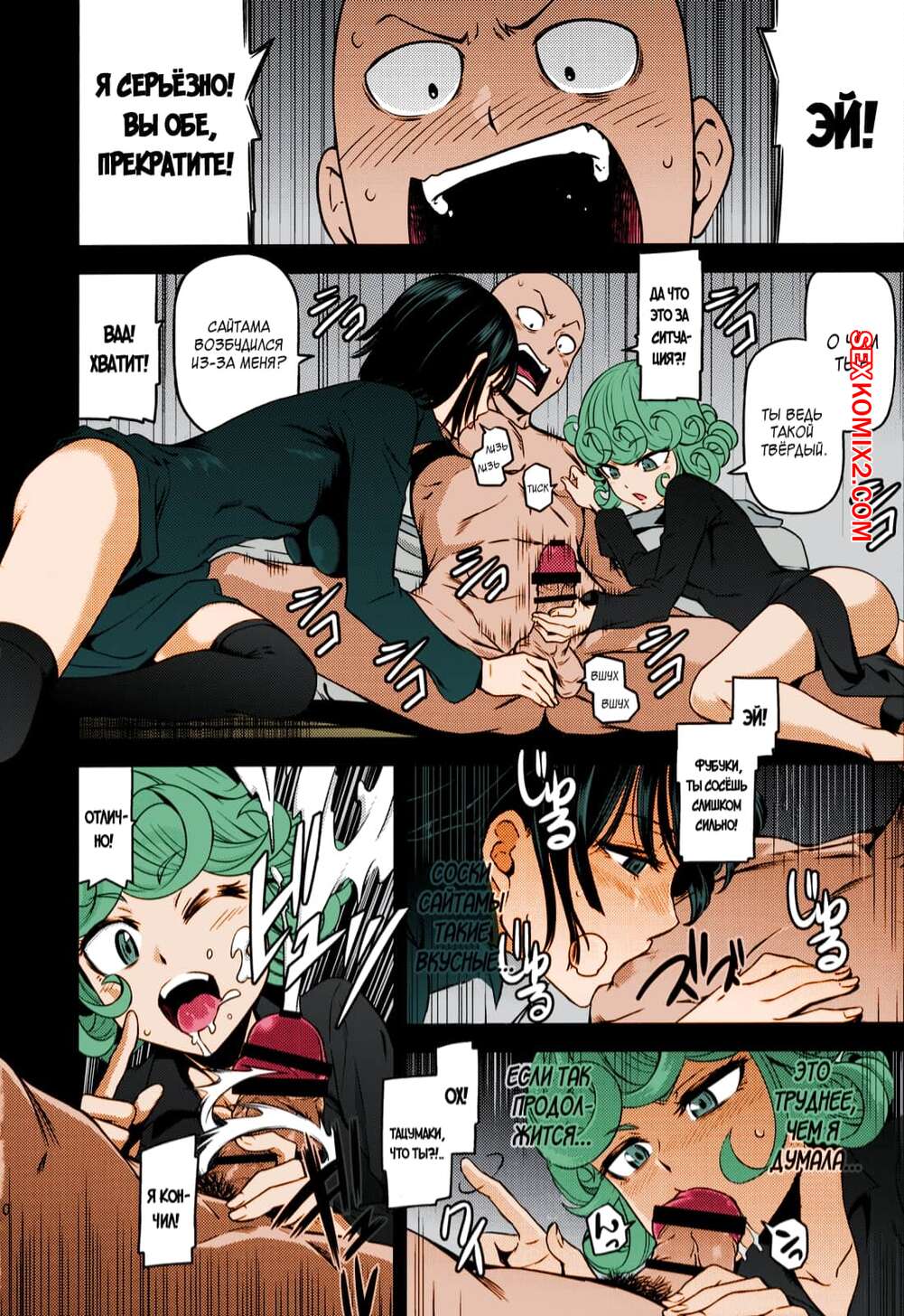Порно комикс ВанПачмен. Часть 4. ONE HURRICANE. В Цвете Красотки стали сходить с ума от большого члена лысого паренька. Они стали сами на него набрасываться, начиная отсасывать, а затем подставляли свою пизду, чтобы их хорошенько отъебали.