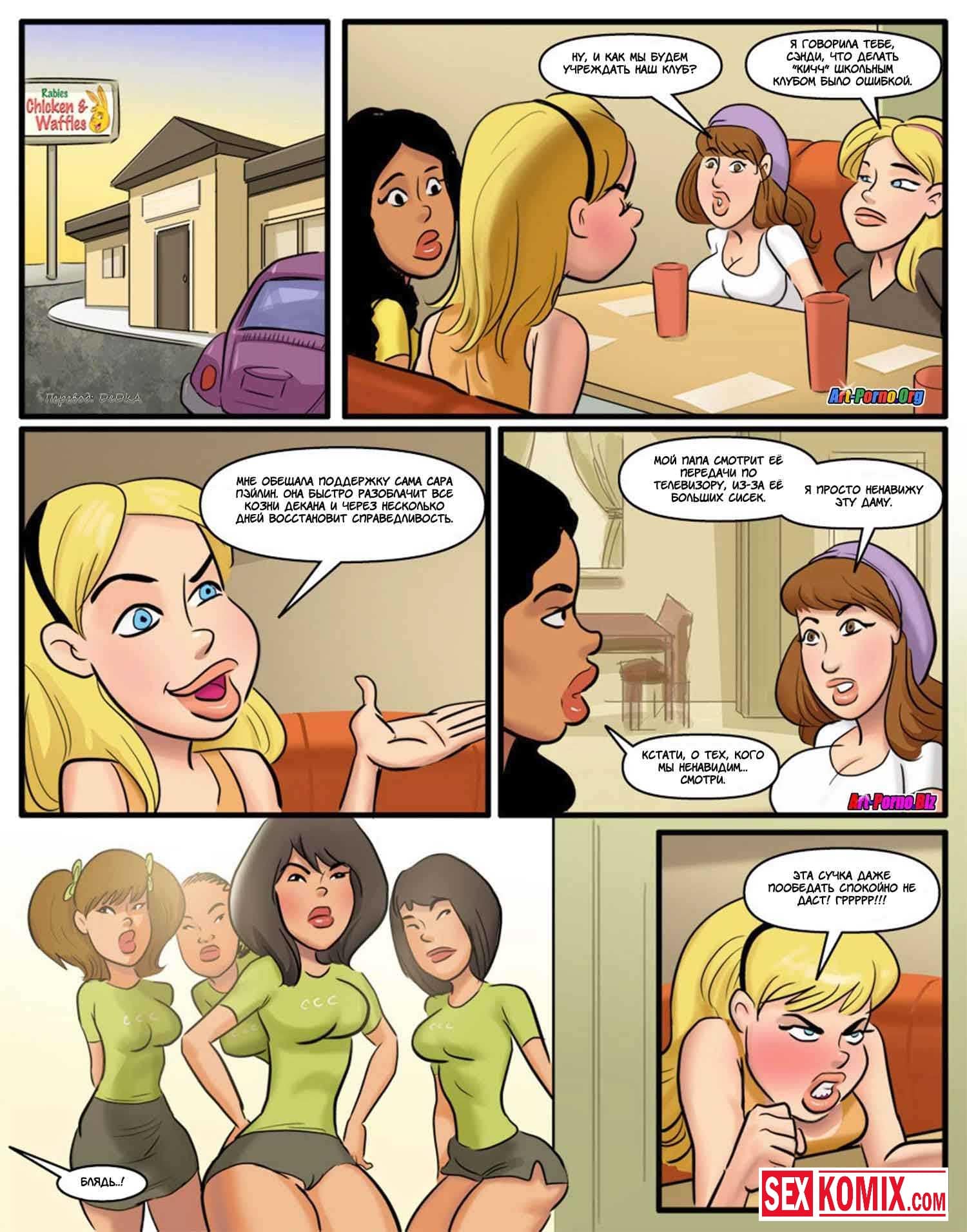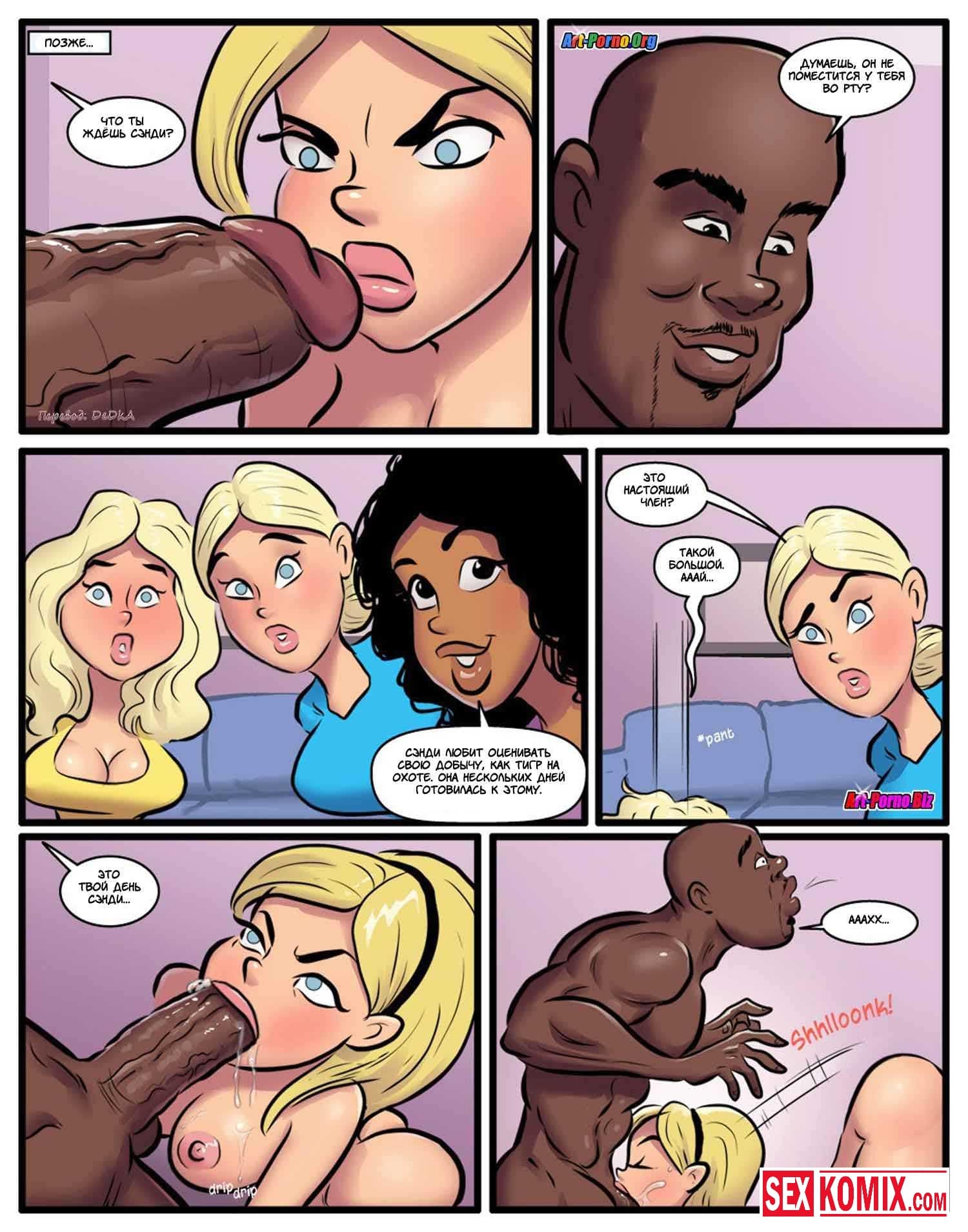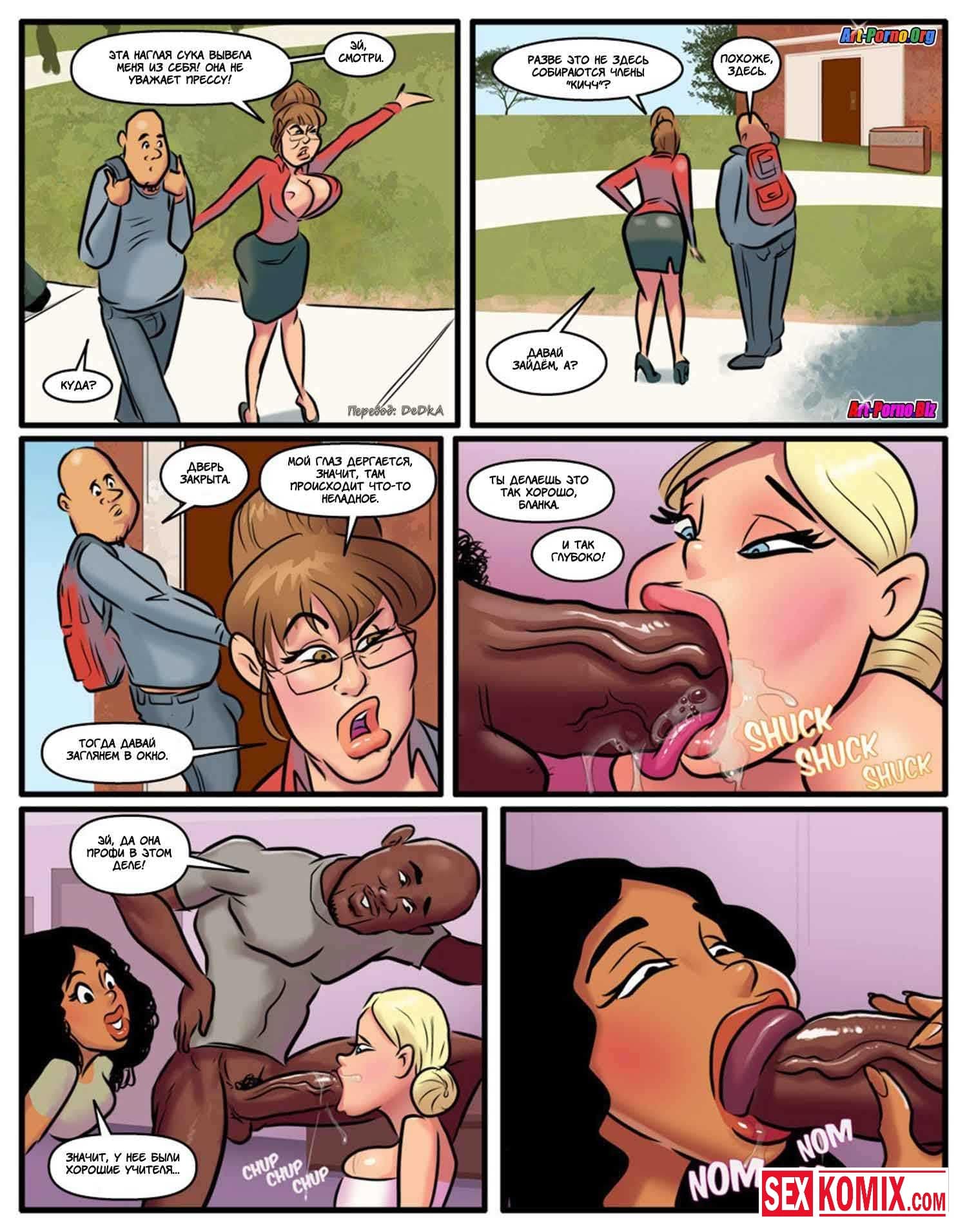 Порно комикс Курсы использования чёрных членов. Часть 2. Девушки почувствовали вкус больших членов чернокожих парней и уже не хотели заниматься сексом со своими белыми парнями. Что бы не потерять своих девушек, парни разрешали им трахаться с чернокожими, но только в их присутствии. И позже чернокожие парни начали брать за это деньги, под видом курсов использования черных членов. Богатым мажорам пришлось за это платить. Иначе их девушки будут трахать им мозги.