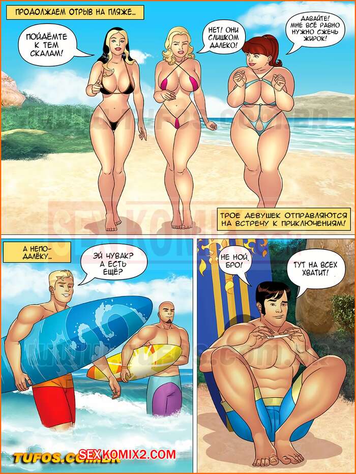 Порно комикс Тетя, кузины и племянник. Часть 27. Наслаждаемся отдыхом на пляже. Эпизод 2 Горячие красотки решили стрельнуть травки у молодых парней на пляже, после чего их накрыло и они стали раздеваться, демонстрируя свои аппетитные фигурки. Парни возбудились от такого зрелища и решила дать красоткам еще у них отсосать, а затем хорошенько их отъебали.