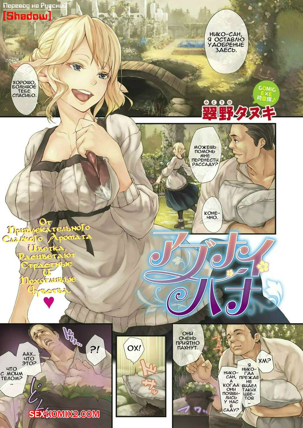 Порно комикс Цветок разврата В лесу парень набросился на горячую сисястую блондинку. Она поддержала его желание и стала сосать его большой хуй, дроча его сиськами, а затем дала себя хорошенько выебать.