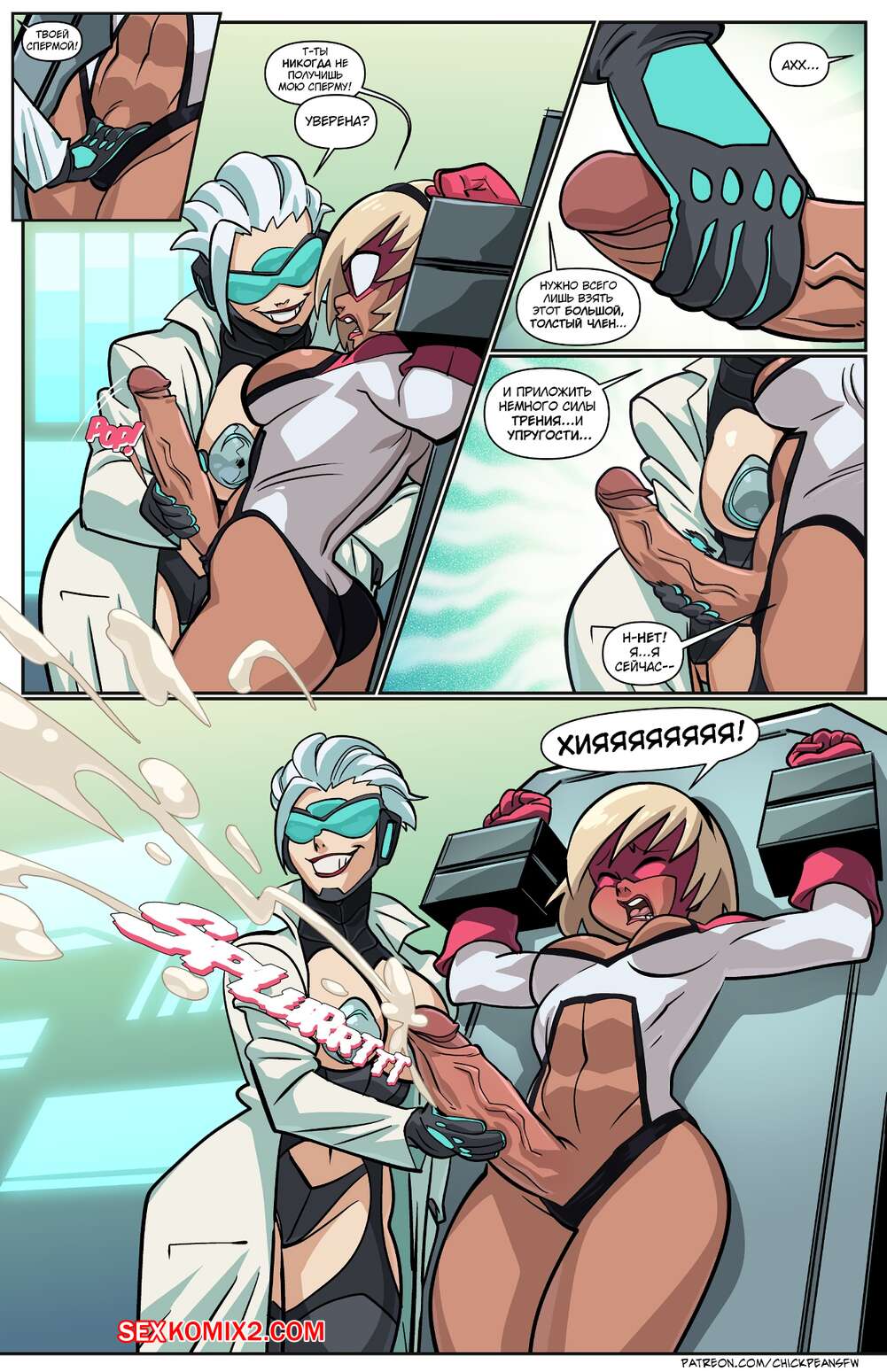 Порно комикс Девушка Д. D Girl. Chickpea Девушка связала горячую блондинку с большим хуем и надела ей на член помпу, чтобы сделать ее хуй еще больше. Затем она налетела на него свой пизденкой и стала мощно трахаться, после чего получила кучу спермы в свое тело.