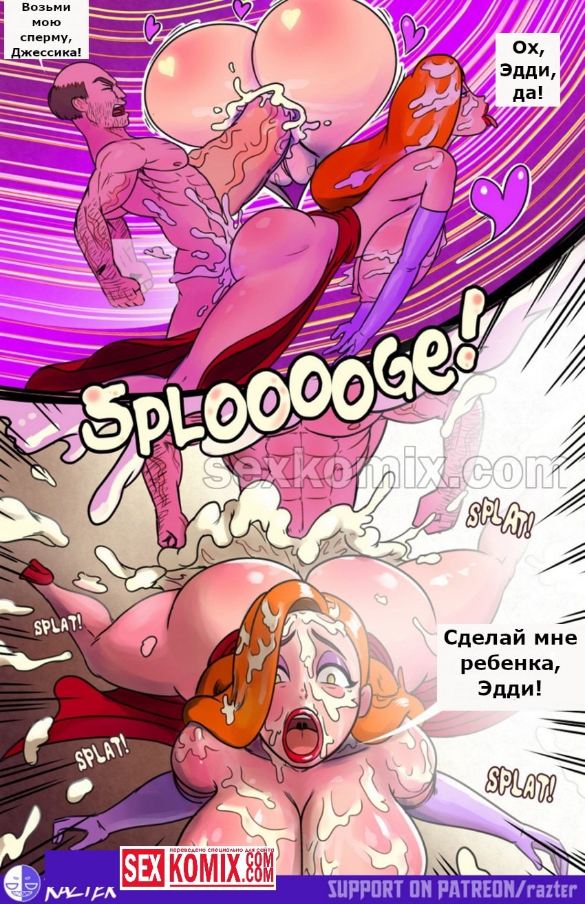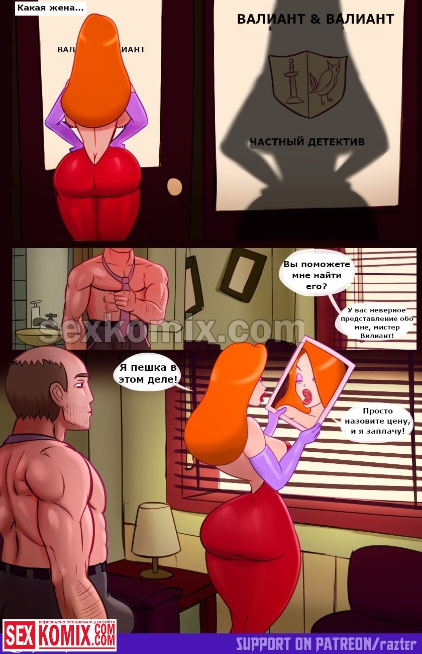 Порно комикс Кто трахнул жену кролика Роджера. Детектив, который живёт в мире мультфильмов, занимается расследованием убийства самого известного актёра, по имени кролик Роджер. Когда расследование заходит в тупик, он уже не знает кого допрашивать, и вызывает на допрос его сексуальную жену. Когда женщина приходит в его кабинет, он оказывается в шоке от того какая она сексуальная, и какие у неё шикарные сиськи. Женщина оказывается очень развратный, и хочется заниматься сексом с детективом.