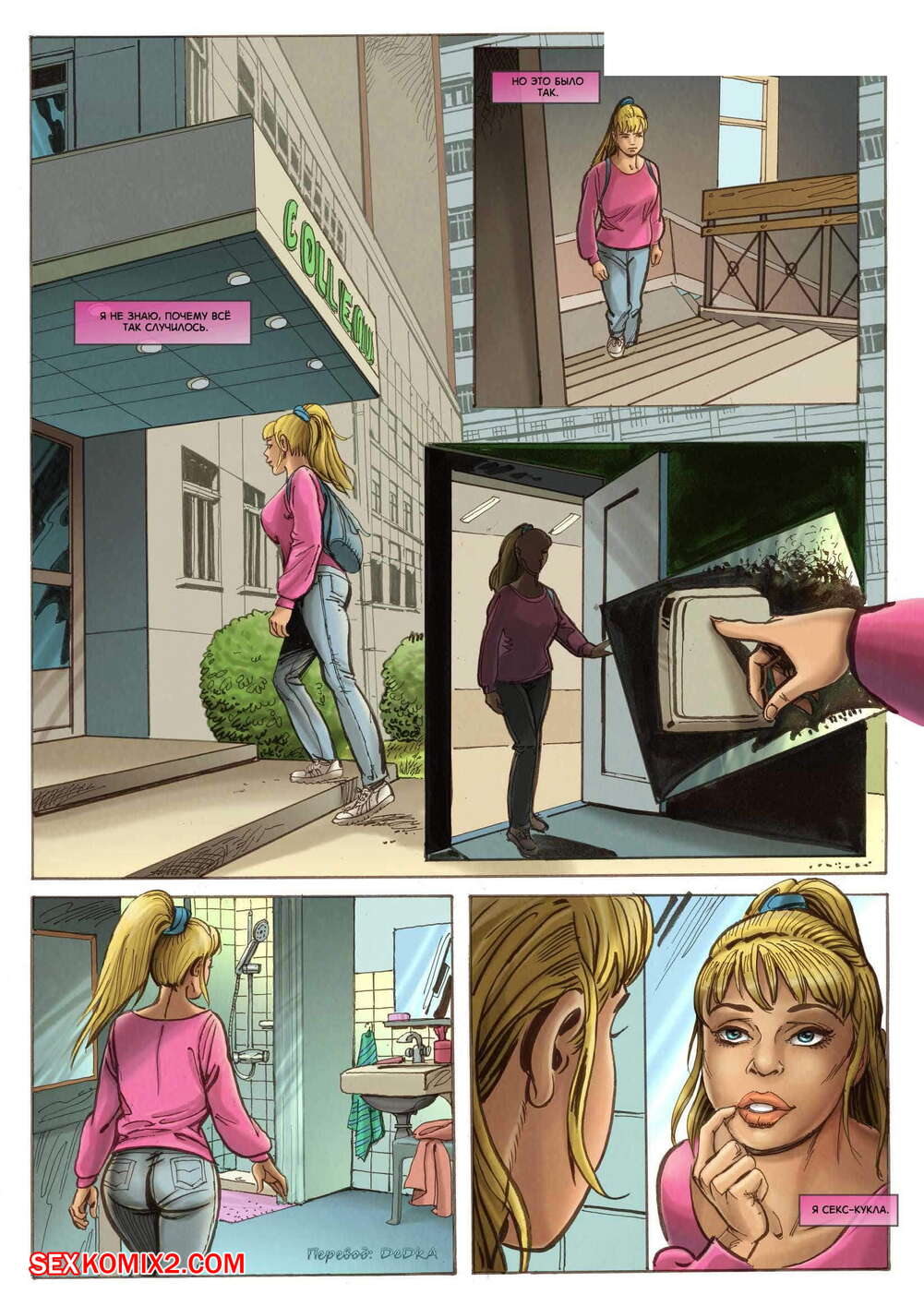 Порно комикс Мир фантазий. Часть 3 Молодая горячая блондинка вернулась со школы и решила принять душ, после этого она разделась в своей комнате и стала ласкать свою пизденку, получая огромное удовольствие.