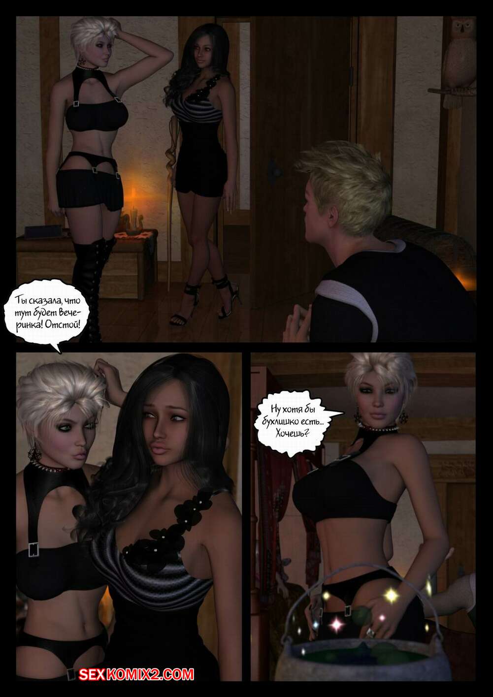Порно комикс Гарриет Купер и жертва волшебника. Часть 1. Горячие красотки были заманены к волшебнику. Он обманом заставил их отсосать его большой хуй, после чего он их хорошенько выебал и все они стали подобны ему и они стали полностью его рабынями.