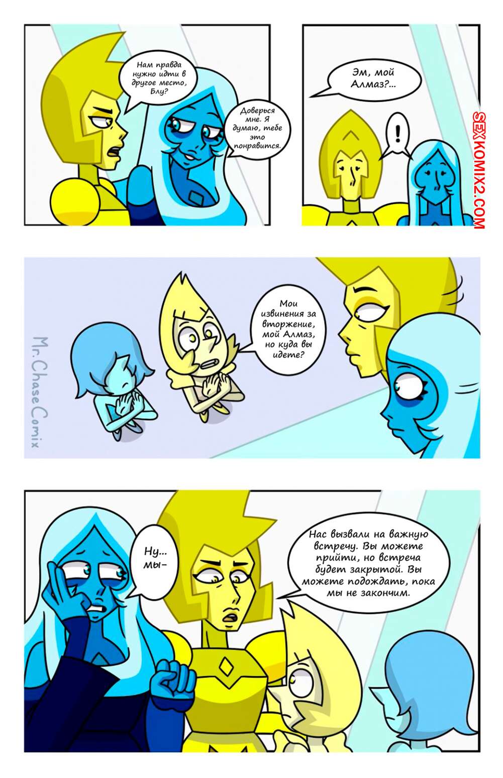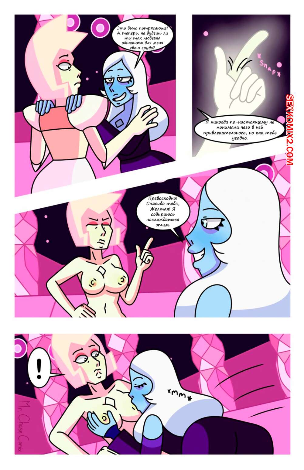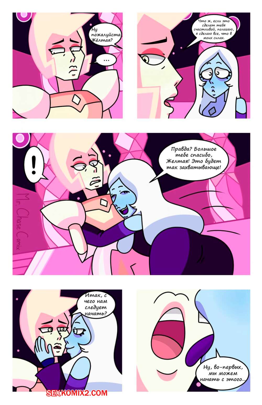 Порно комикс Вселенная Стивена. Будь моим Алмазом. Be My Diamond. Mr.ChaseComix Две горячие красотки с большими сиськами любят проводить время вместе и доставлять друг дружке удовольствие. Они разделись и начали ласкать большие сиськи друг дружки, после чего занялись страстной лесбийской еблей.