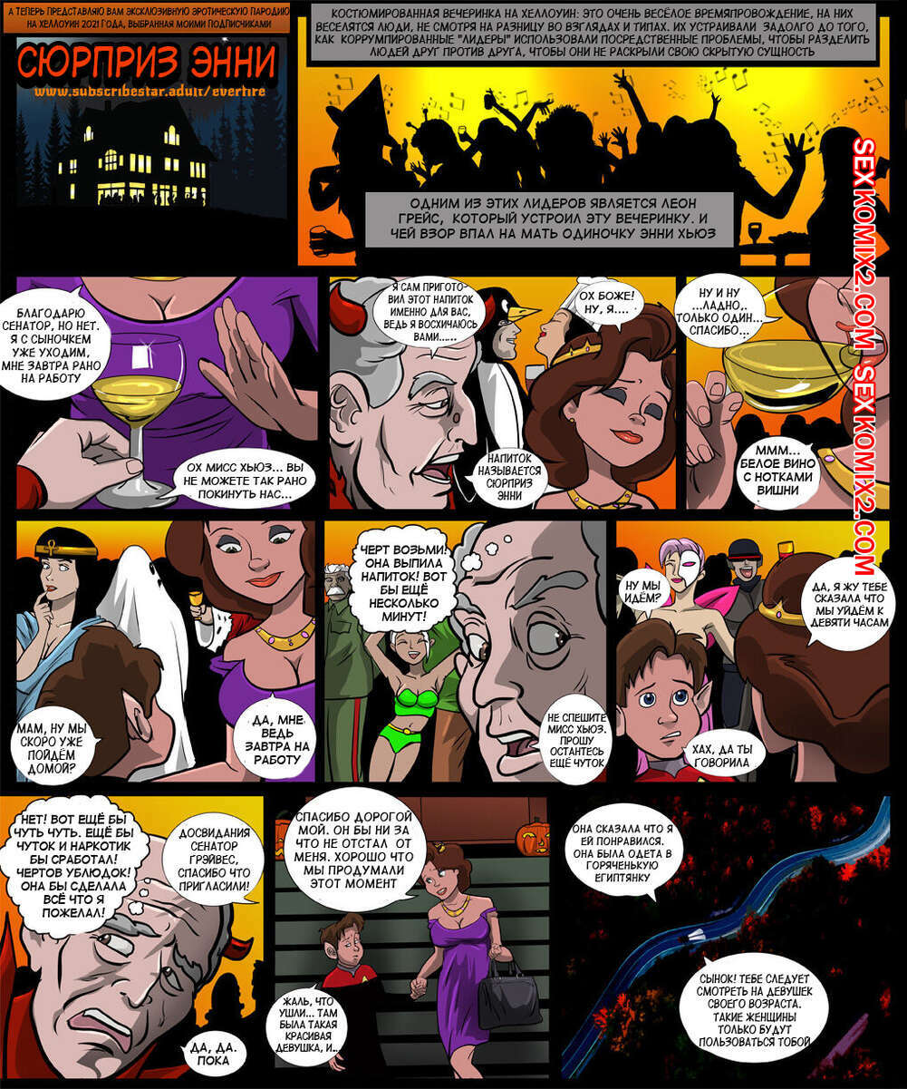 Порно комикс Стальной гигант. Сюрприз Энни. ANNIE SURPRISE. После карнавала милфа с парнем отправилась домой. Она устроили показ своих развратных костюмов и после этого они занялись сексом.