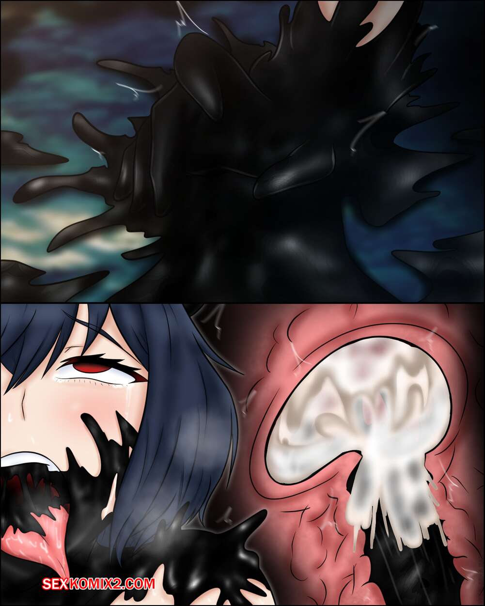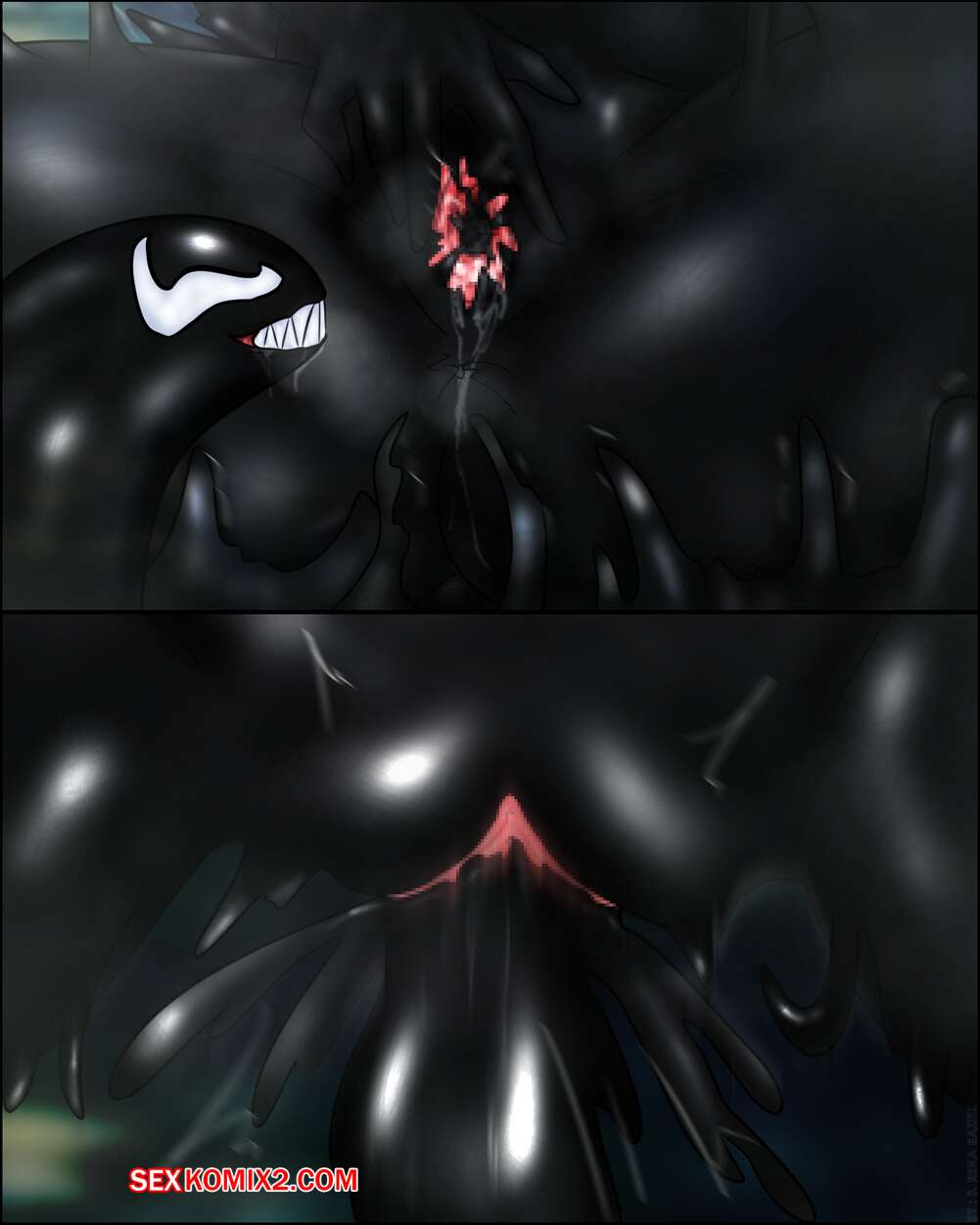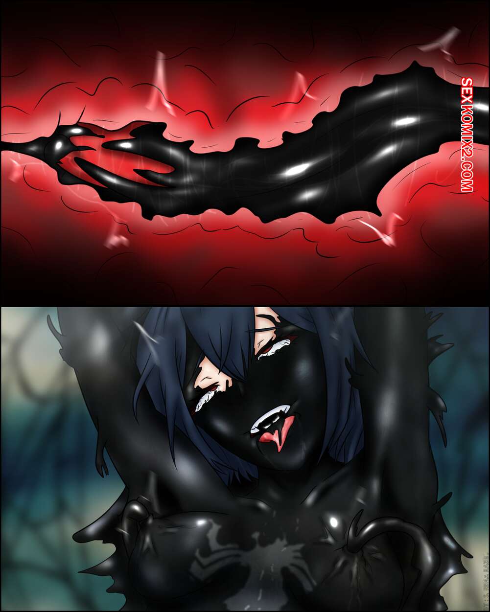 Порно комикс Секре Сваллотейл и Веном Симбиот. Secre Swallowtail Symbiote Venom Молодую горячую красотка брюнетку с большими сиськами захватил симбиот. Он стал ласкать ее большие сиськи и все дырочки, доставляя ей огромное удовольствие, а затем полностью захватил ее тело.