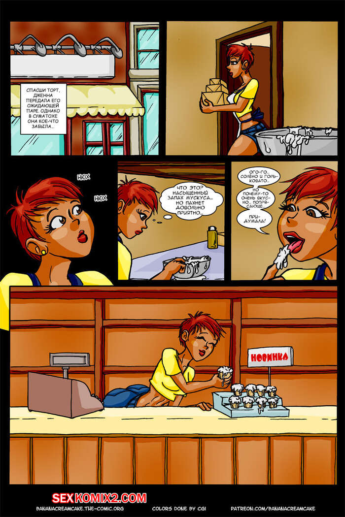 Порно комикс Футанари. Торт с банановым кремом. Transmorpher DDS Пока девушка готовила торт, ее подруга с большим хуем сильно возбудилась, поэтому стала надрачивать свой огромный хуй. Она выдрочила так много спермы, что затем добавила эту сперму в торт.