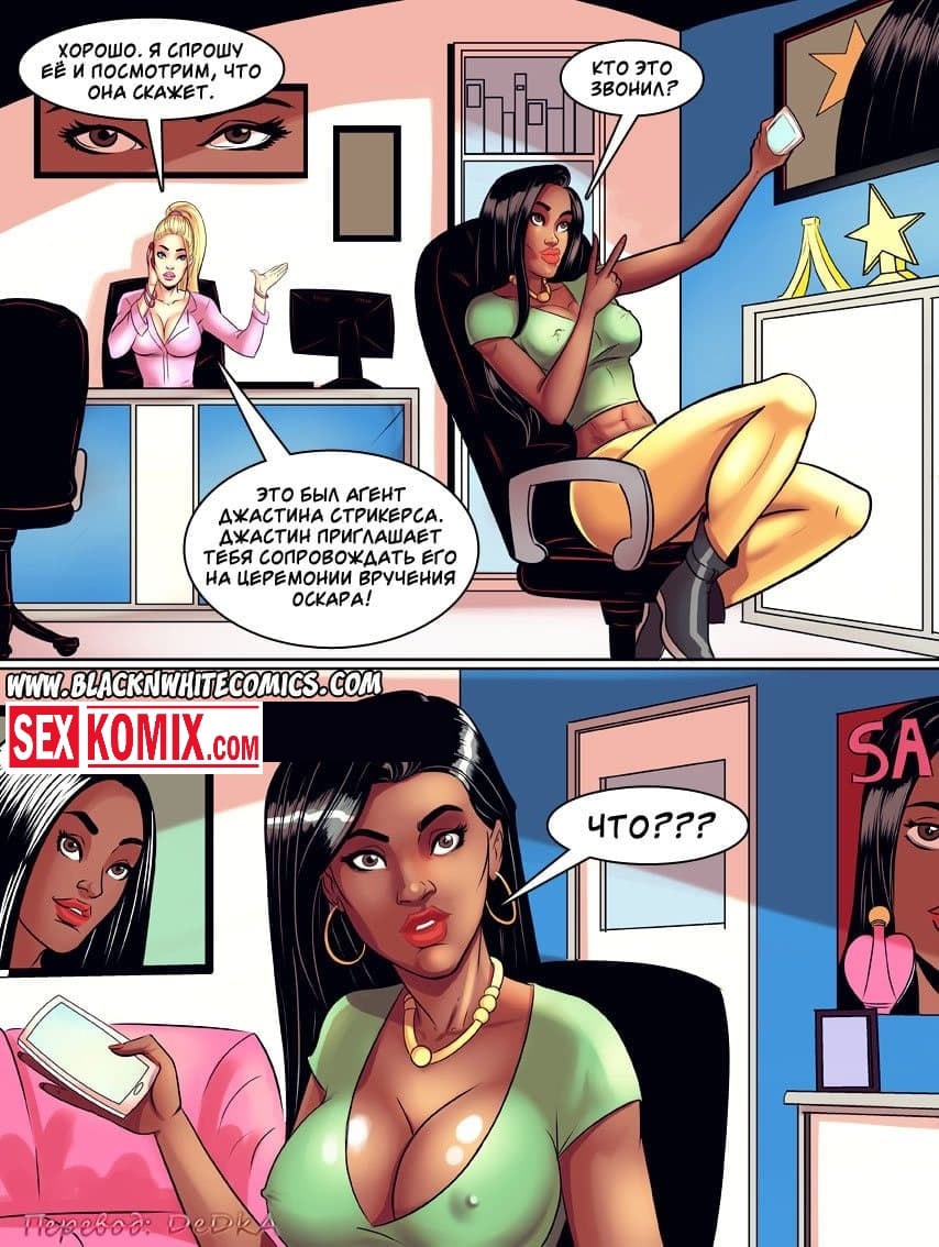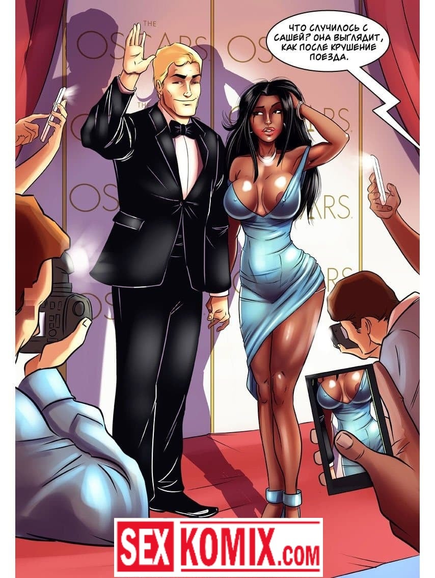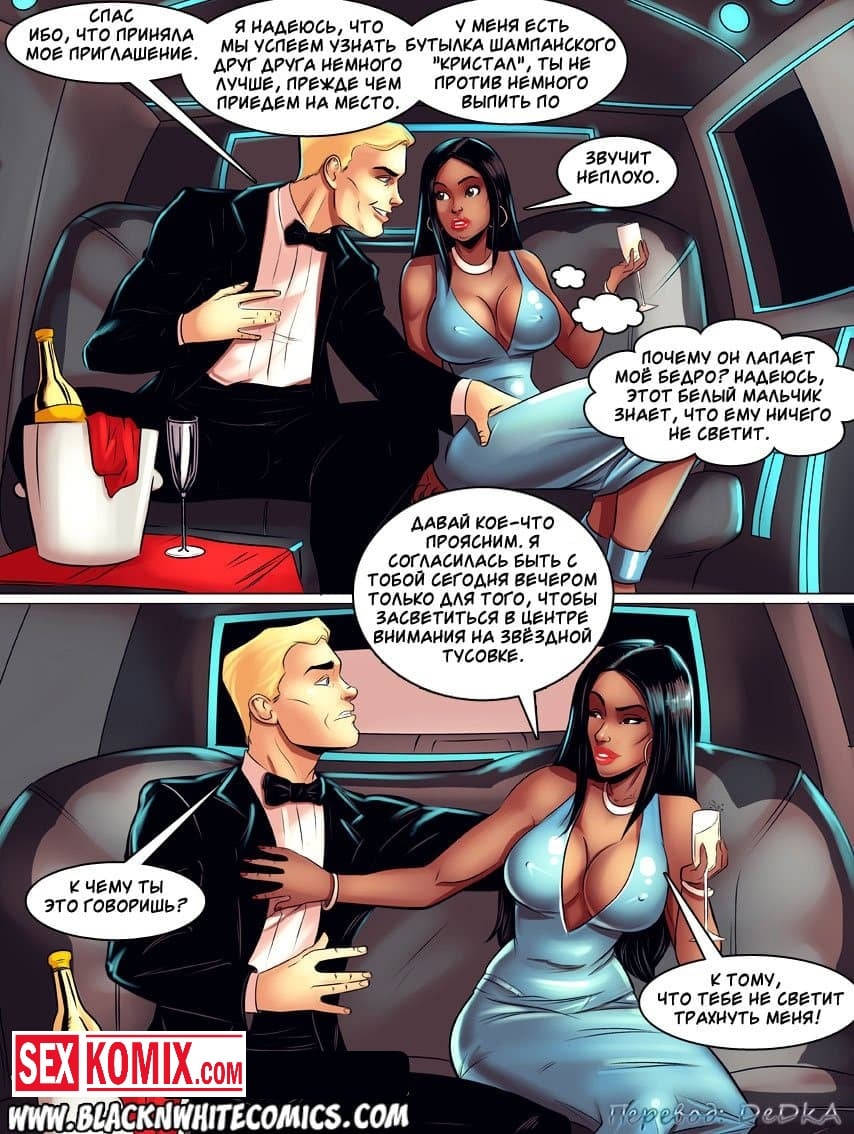Порно комикс Красная дорожка. Известный голливудский актёр был приглашен на престижную церемонию вручения, ему обязательно нужно было вторая половина для этого мероприятия. Парень решил позвать свою чернокожую подругу, когда они встретились и вместе ехали в лимузине между мужчиной и женщиной промелькнула страсть. Они набросились друг на друга, и жадно целуя в губы снимали одежду. Пока они ехали до церемонии все время занимались сексом.