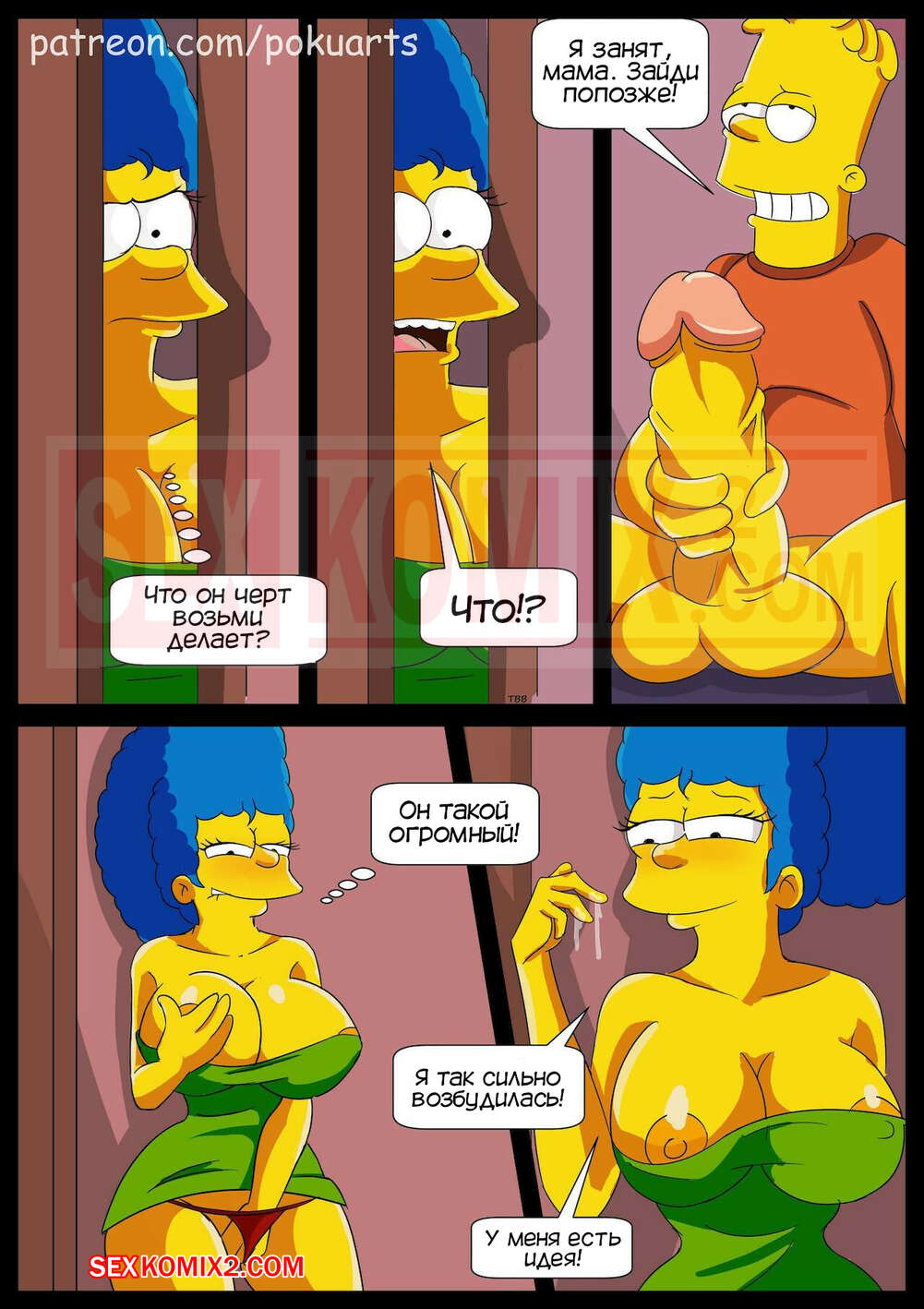 Порно комикс Симпсоны. У моего сын огромен. The Simpsonss My Son is Huge. Pokuarts Пока мужа не было дома, милфа застукала своего сына за дрочкой и была поражена его большим размером члена. Она решила надеть свое сексуальное белье и присоединилась к нему. Сучка отсосала огромный хуй парня, а затем дала ему себя хорошенько выебать.