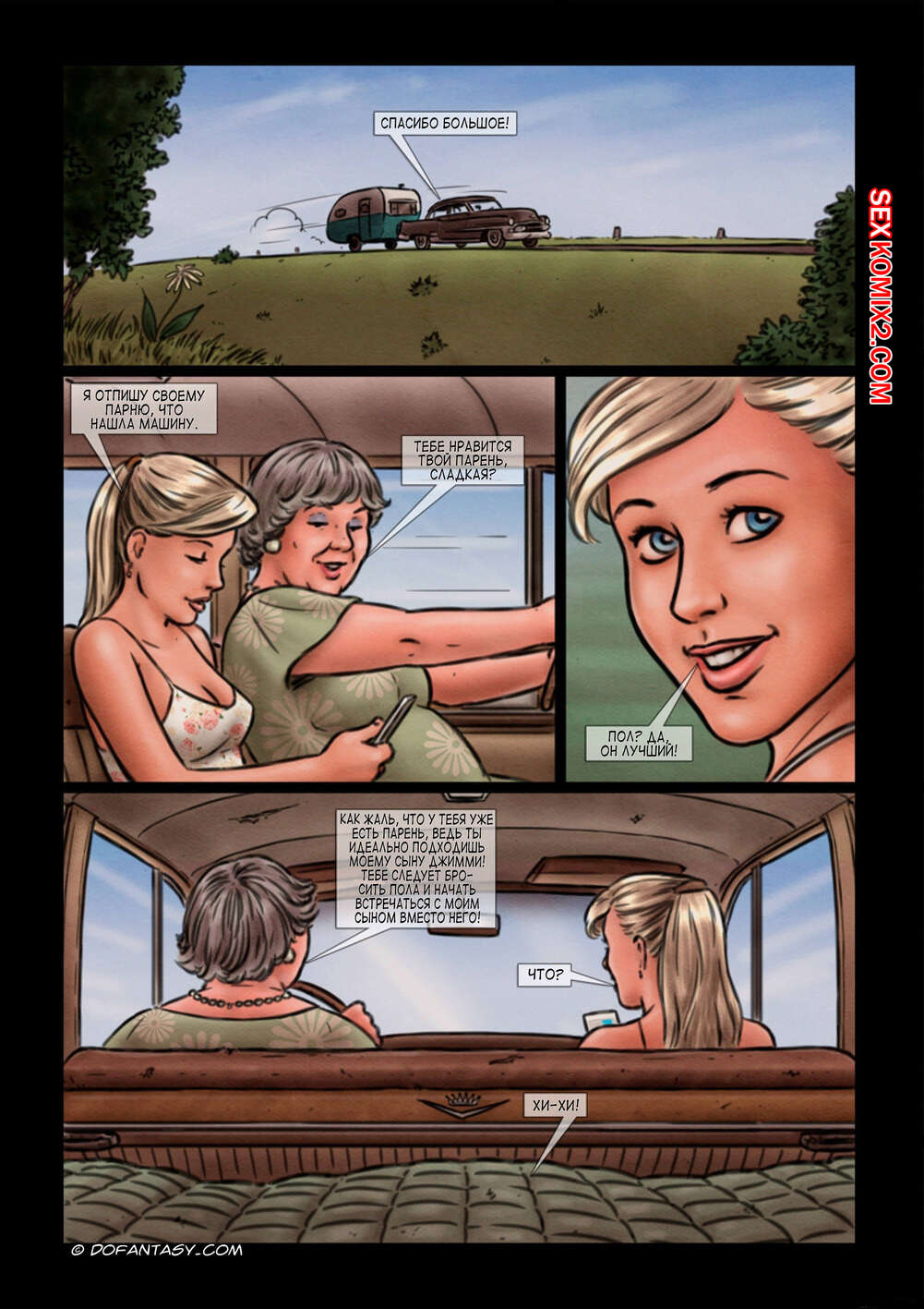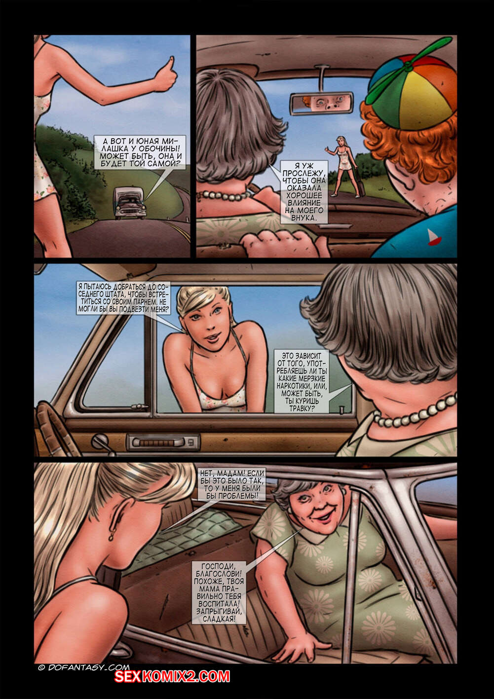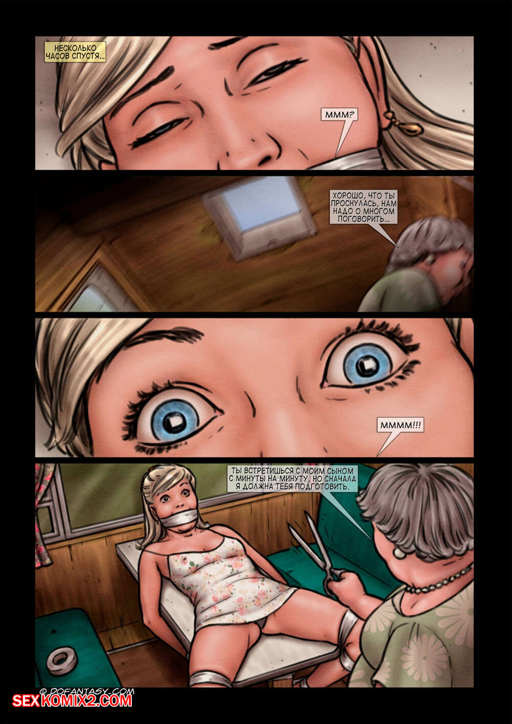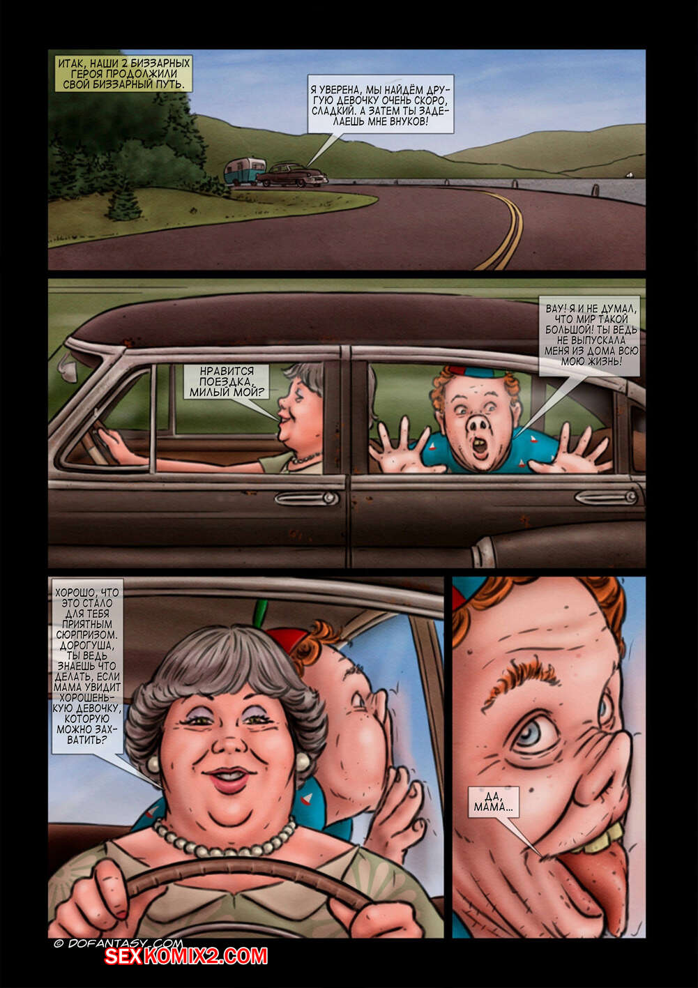 Порно комикс Маменькин сынок. Часть 3. Mamas baby boy Милфа ехала со своим сыном за городом и они решили подвезти молодую красотку блондинку. Пока она отвлеклась, парень набросился на нее сзади. Они связали ее и парень стал ее трахать.