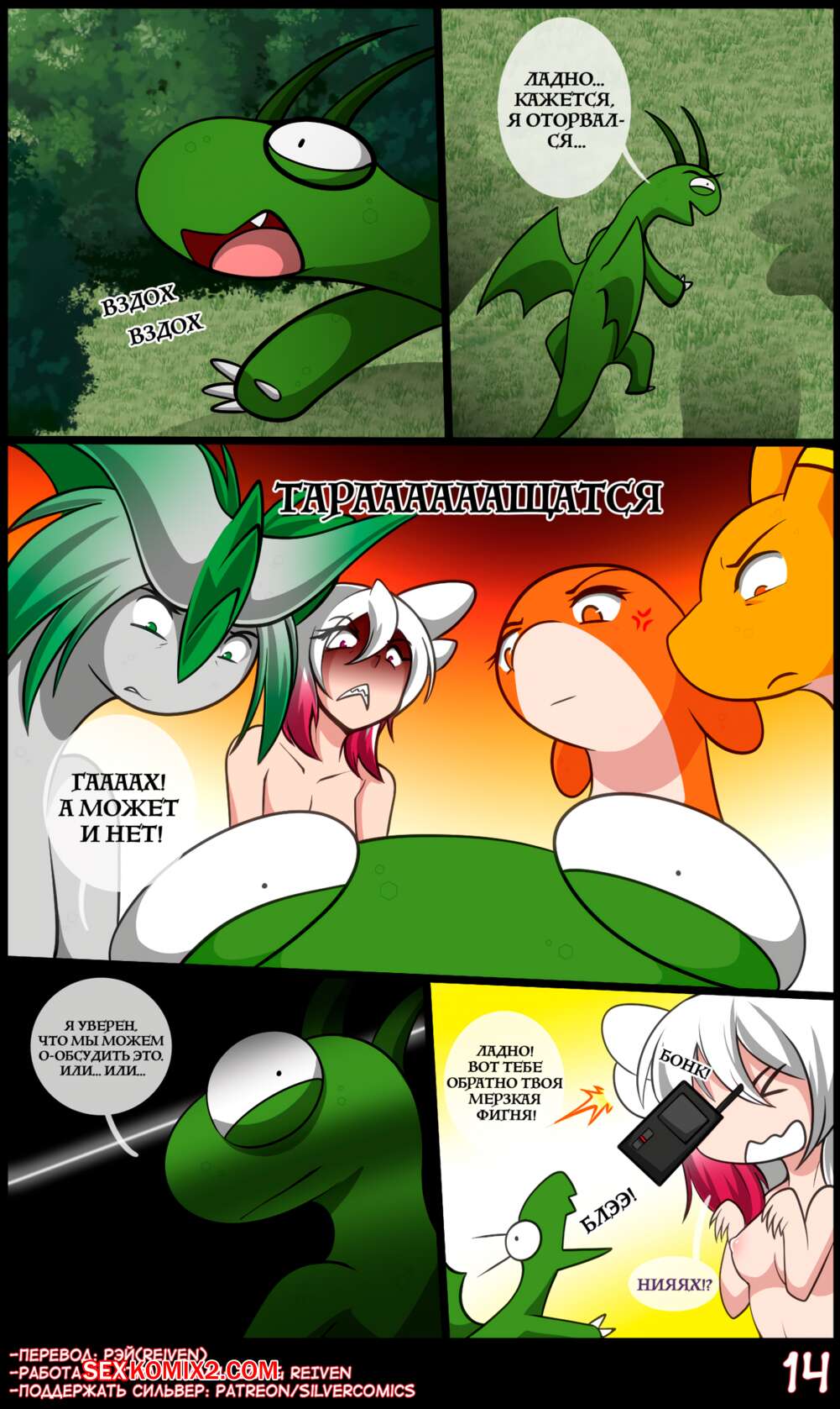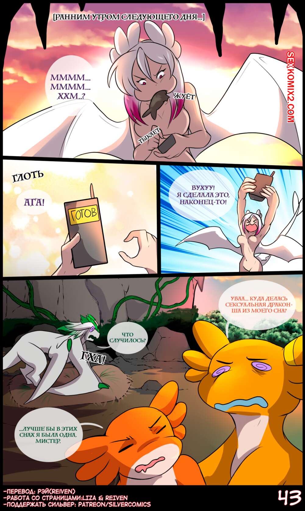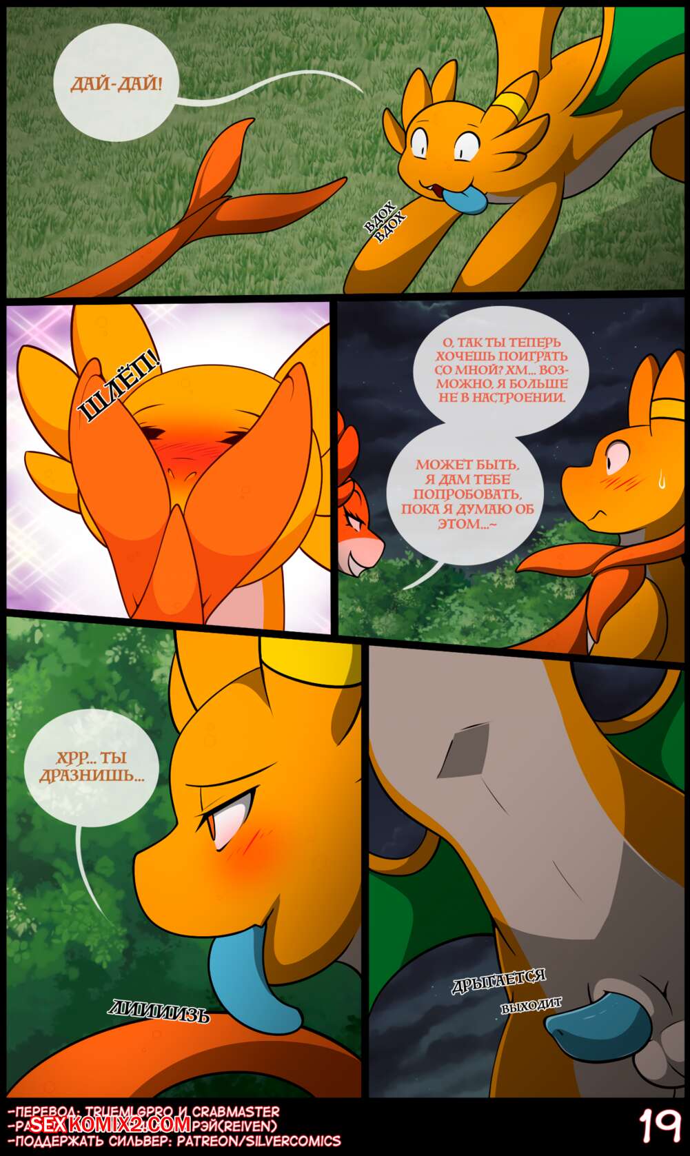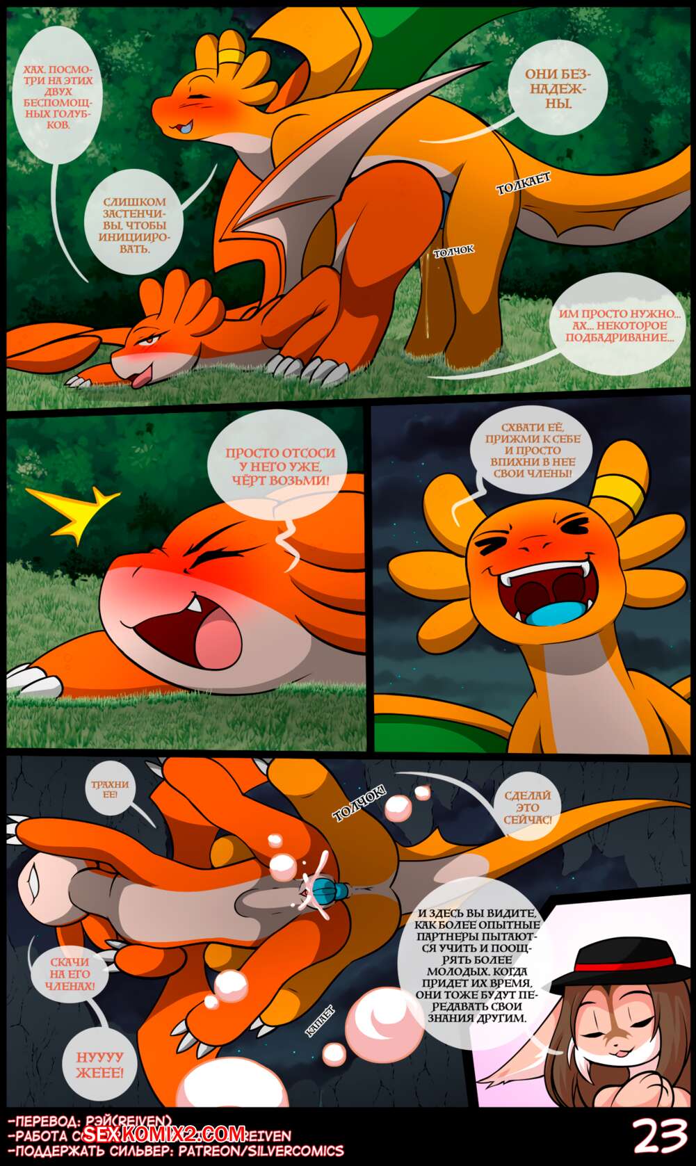 Порно комикс Правление драконов. matemi Парочка драконов уединилась в лесу, чтобы повеселиться. Сучка отсосала большой хуй парня и раздвинула перед ним свои ножки. Парень вставил в нее свой большой хуй и дала ему себя хорошенько выебать.