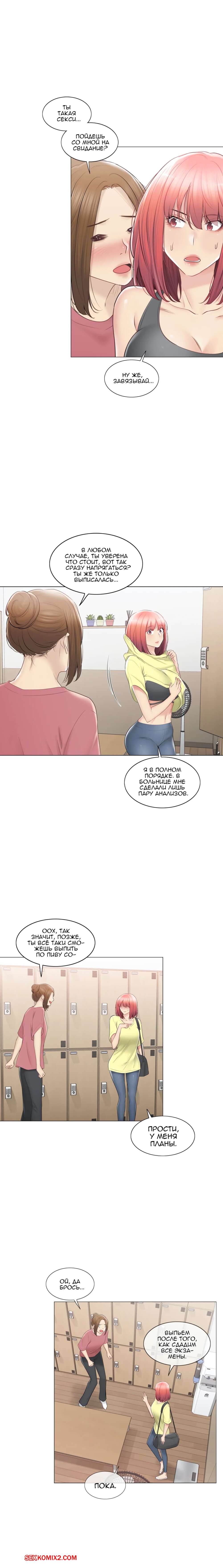 Порно комикс Прикоснись к нему. Часть 100. Touch to unlock Горячая красотка брюнетка решила повеселиться со своей сисястой подругой после урока физкультуры в школе. Она стала ласкать ее в раздевалке, но девушка была против и покинула ее.
