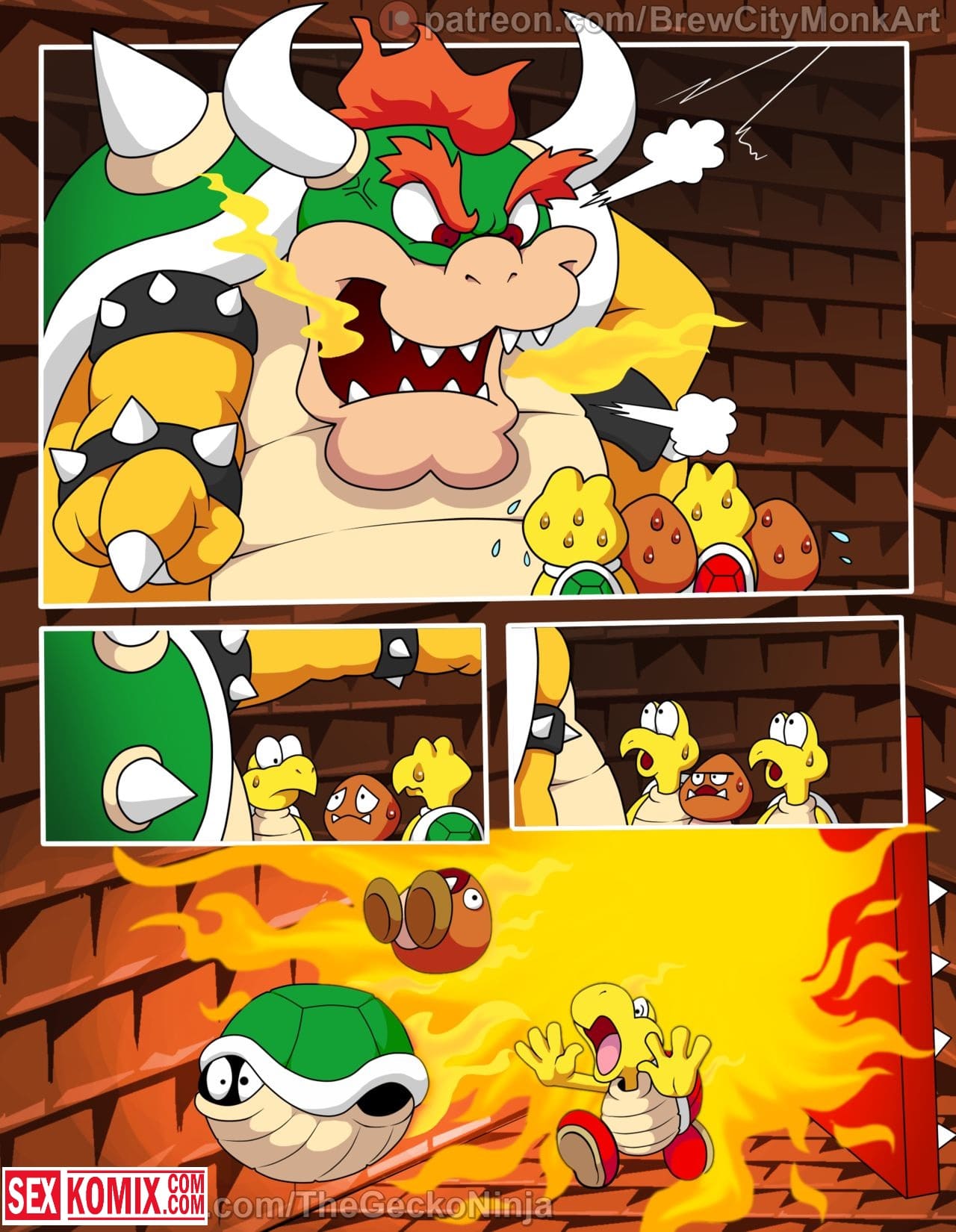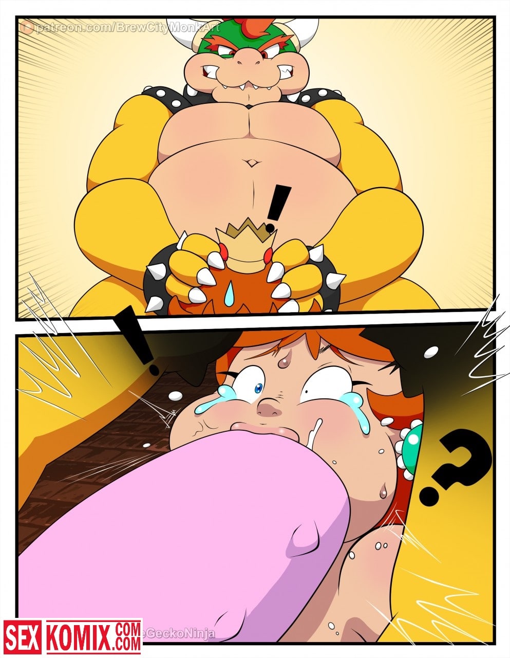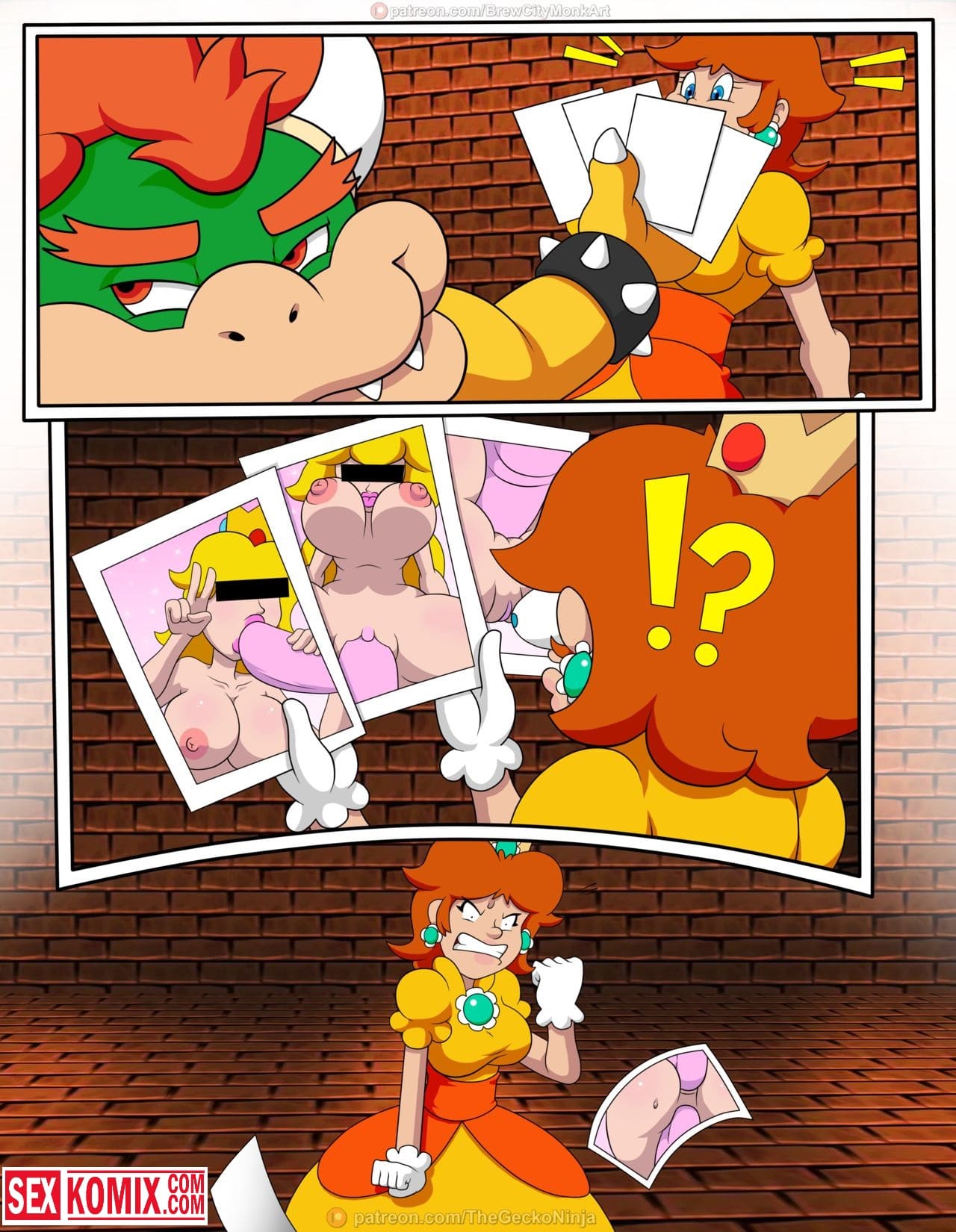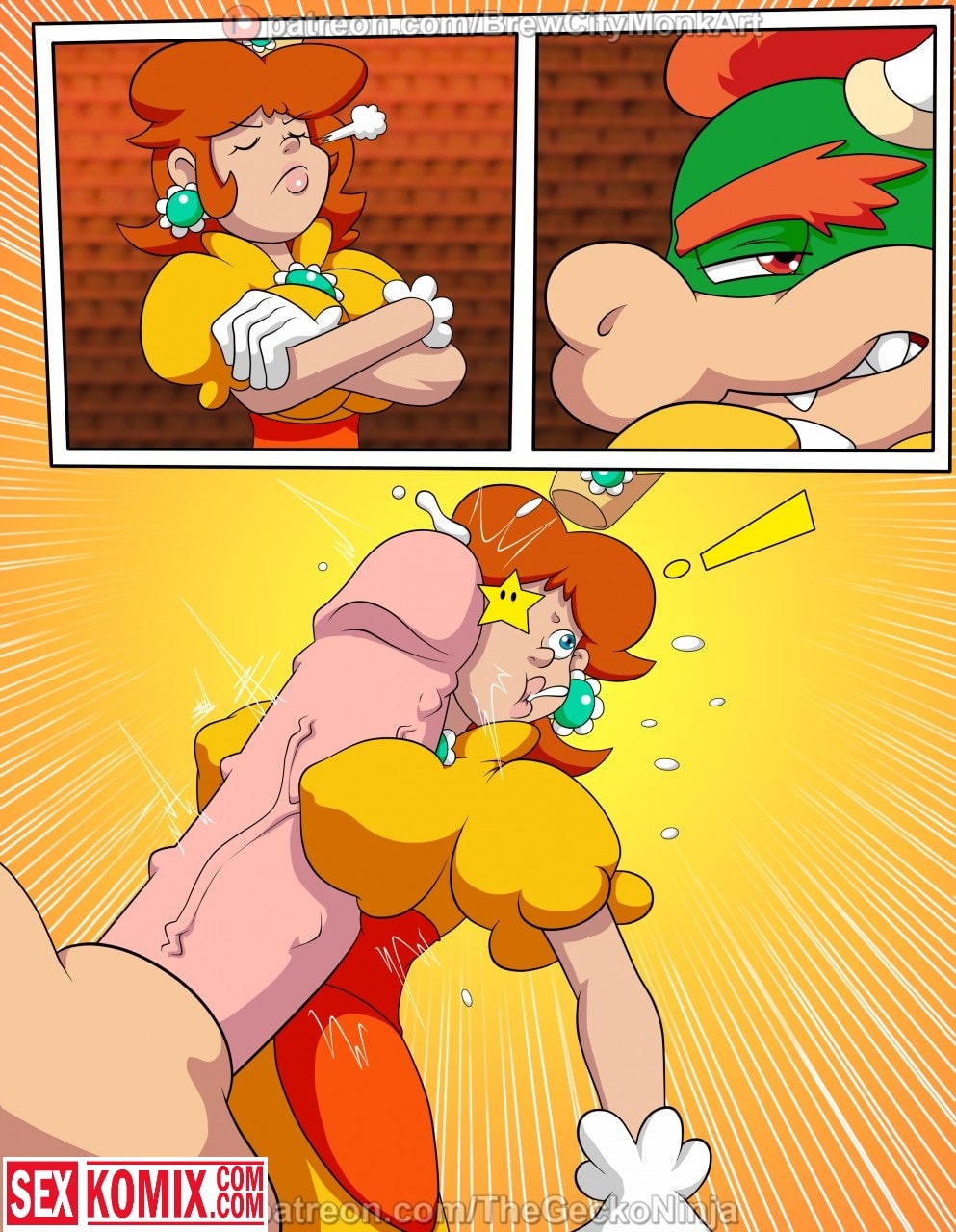 Порно комикс Принцесса шлюха. Лучшая подруга Марио попала в плен развратного дракона и его прислужников. Они уже давно мечтали о том, чтобы трахнуть её. Для этого и похитили, девушка сначала была против того, чтобы заниматься с ними сексом. Но потом вошла во вкус, и с радостью трахалась с самим драконом и с его охраной. Обрабатывая их сразу по несколько человек, когда её муж узнал о том, что она в заточении, было уже поздно. Спермой было залито всё её тело.