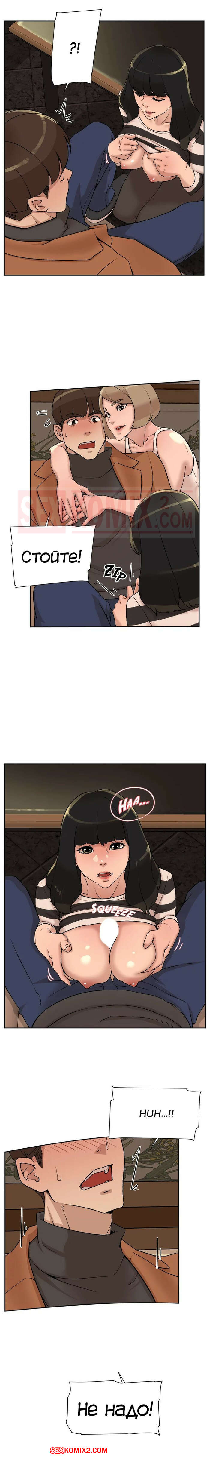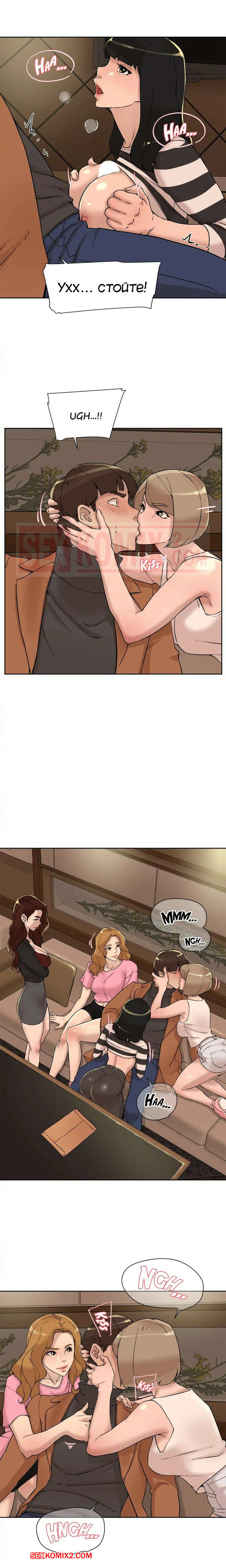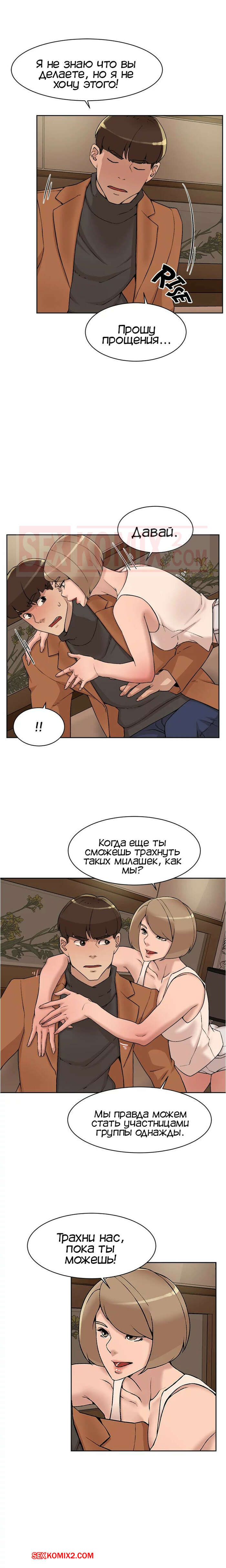 Порно комикс Её 4 размер. Часть 118. Her 4 Incher Горячая сисястая брюнетка продолжила соблазнять парня, но он боролся изо всех сил. Сучка позвала девушек из своей команды и они продолжили соблазнять парня своими большими сиськами.