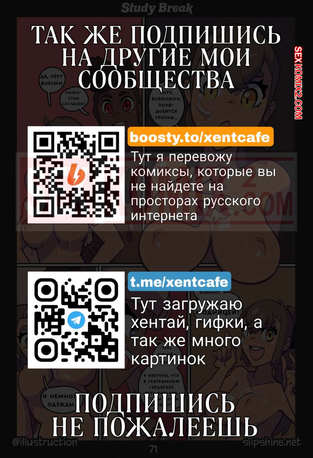 Порно комикс Перерыв в учёбе. Линия. Часть 4. Study Break. Line Молодая горячая брюнетка решила отдохнуть от занятий со своим черным дружком. Они уединились и сучка разделась перед парнем, после чего стала сосать его большой хуй и дала ему себя хорошенько выебать.