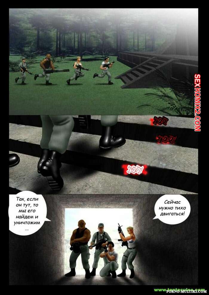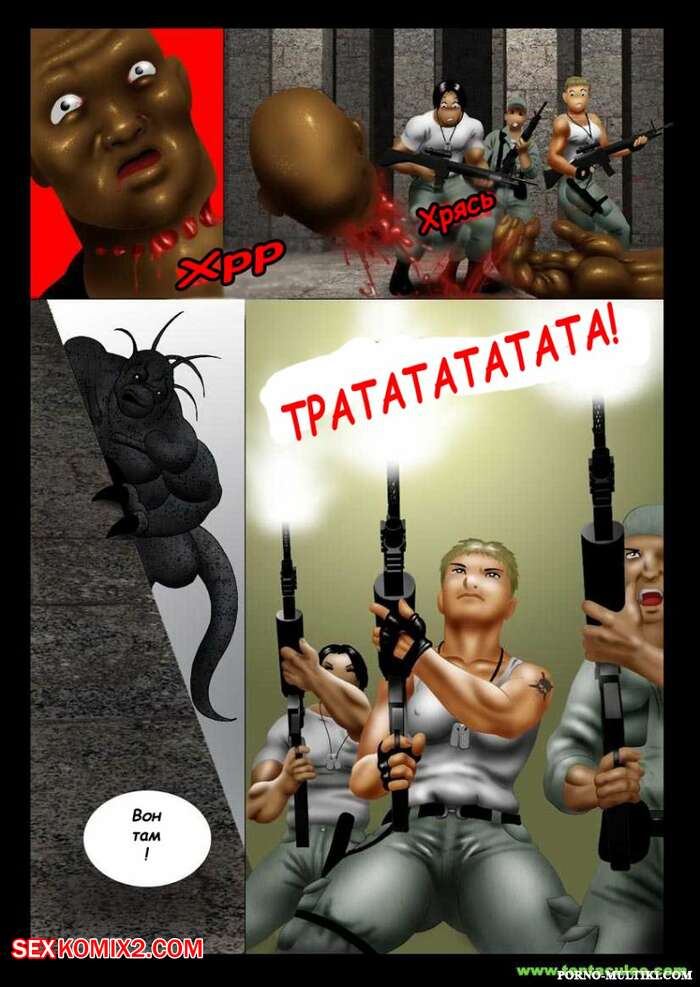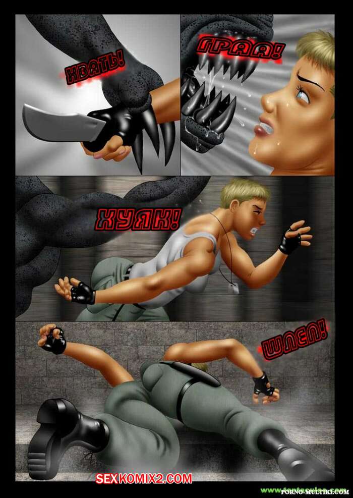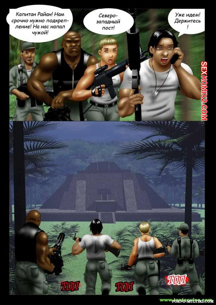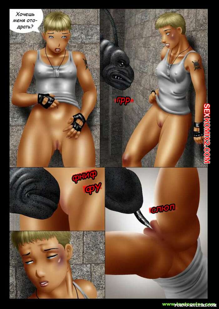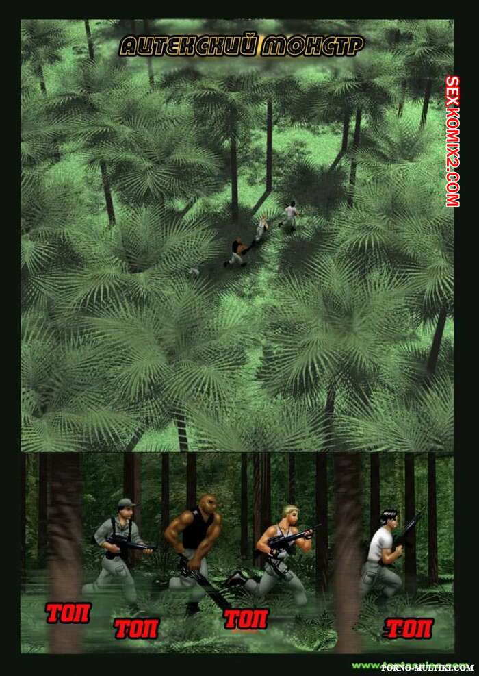 Порно комикс Ацтекский монстр насилует девушку солдата Монстр убил всех мужиков в военной группе и оставил только девушку блондинку. Он раздел сучку и стал ее трахать в рот своим большим хуем, после чего хорошенько ее выебал и обкончал ее.