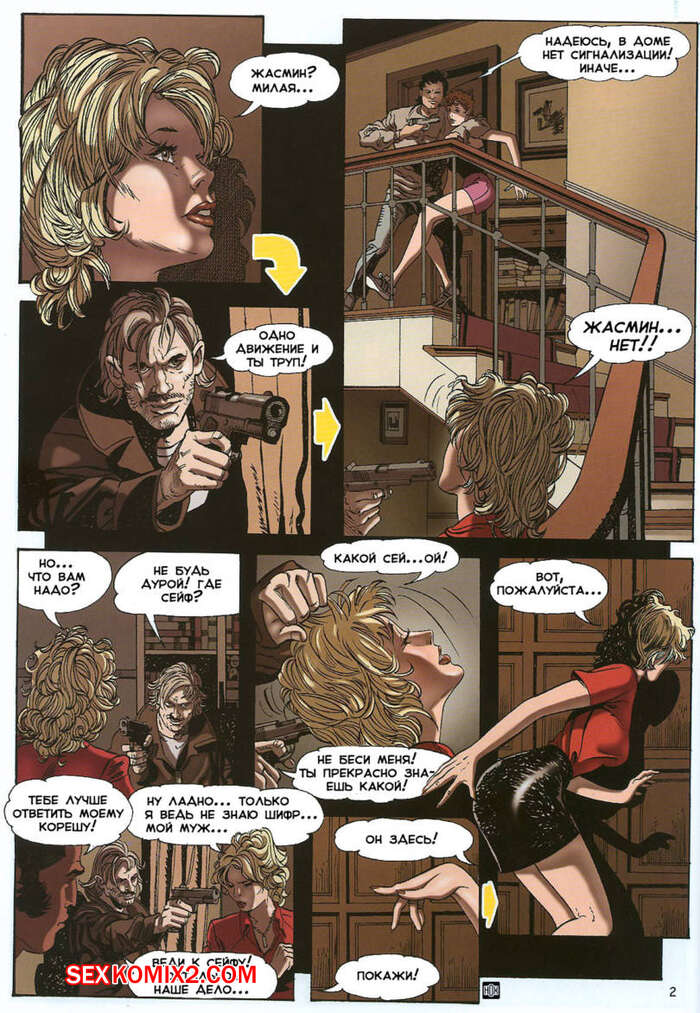 Порно комикс Непокорная заложница В дом к горячим красоткам милфами ворвались мужики с оружием. Они стали угрожать сучкам и раздевать их. У девушек не было выбора, поэтому им пришлось отсосать у парней и дать им себя выебать.
