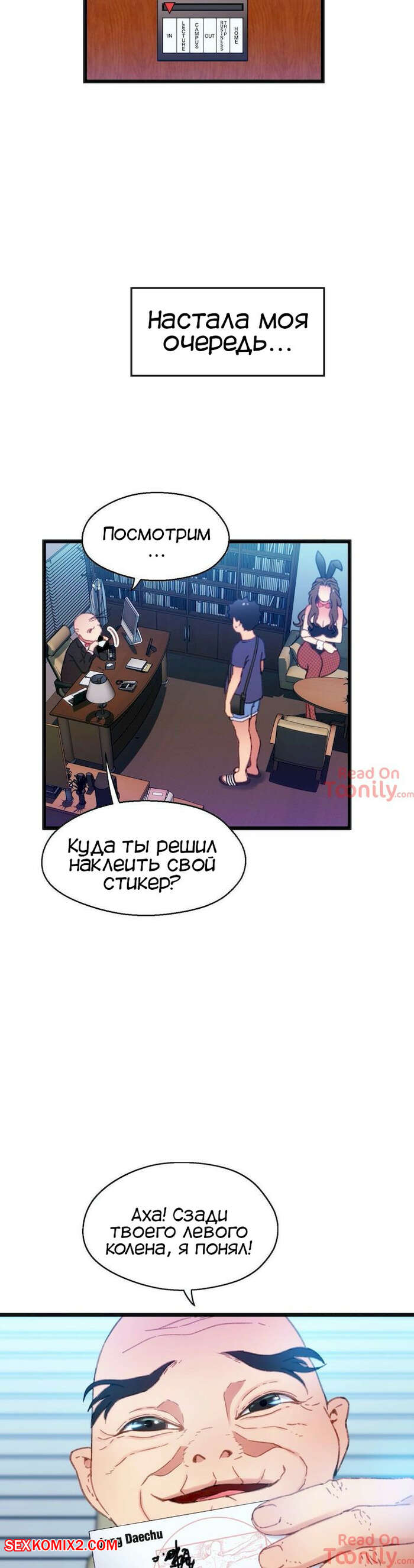 Порно комикс Игра с телом. Часть 8. The Body Game Участники получили правила игры и стикеры, так что теперь им предстоит по одиночке встретиться с профессором в его кабинете, чтобы он лично наклеил стикеры на их тела.