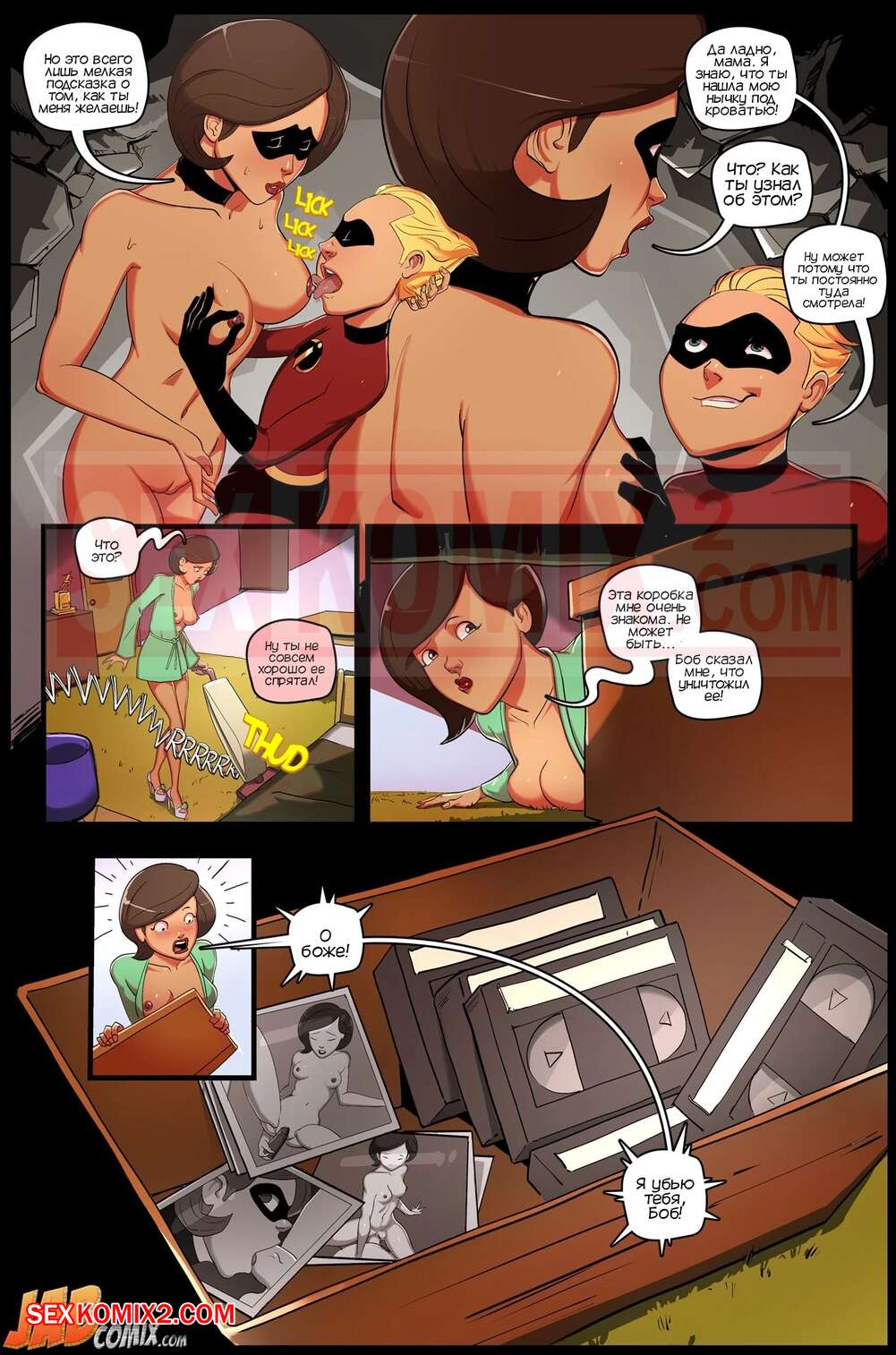 Порно комикс The Improbables. Часть 2. Суперсемейка. The Incredibles. JABComix. Шастик с мамкой попали в ловушку и находятся на грани смерти. Парень стал рассказывать мамке, как сильно она его возбуждает, так что мамаша решила воспользоваться моментом и доставить парню удоовольствие.