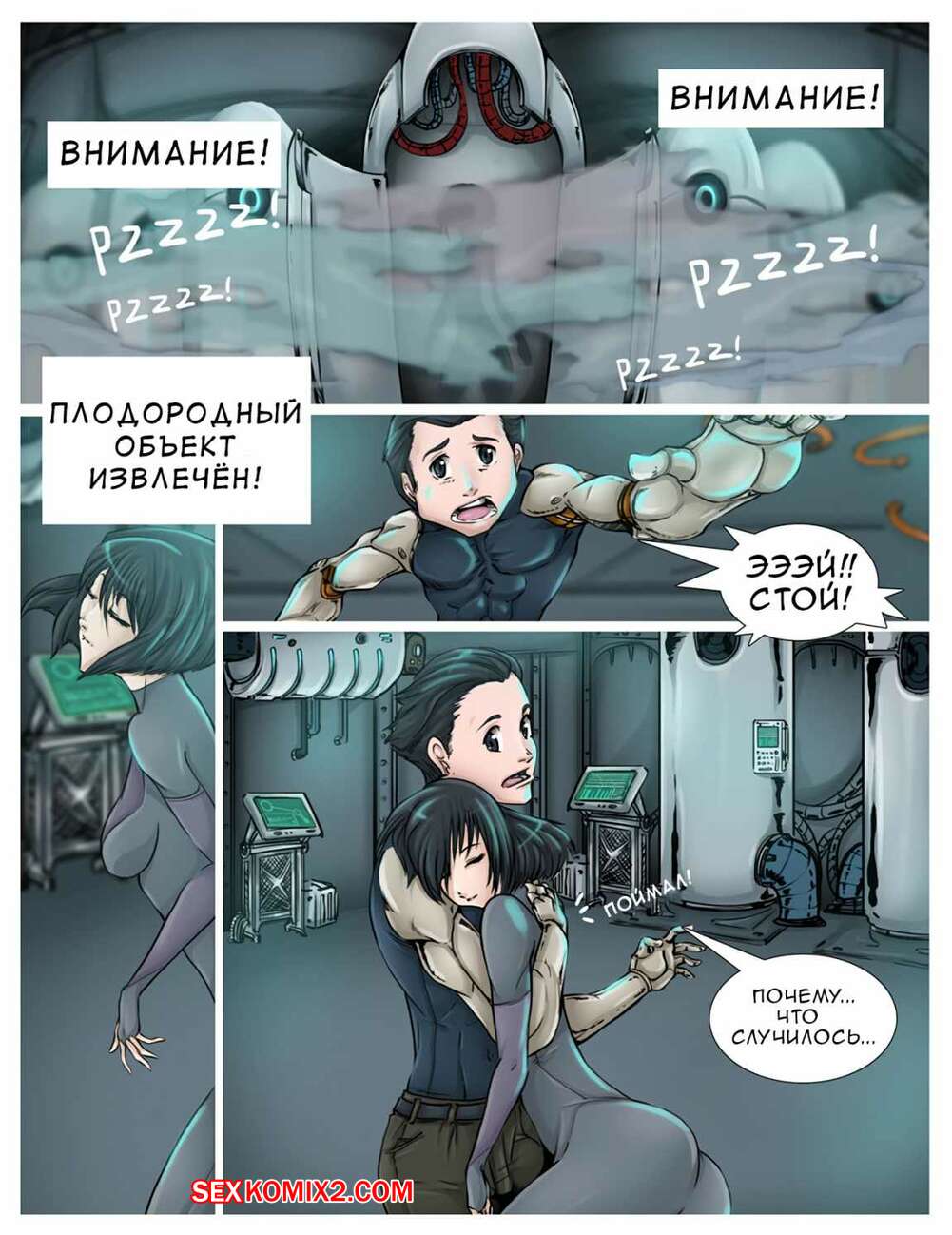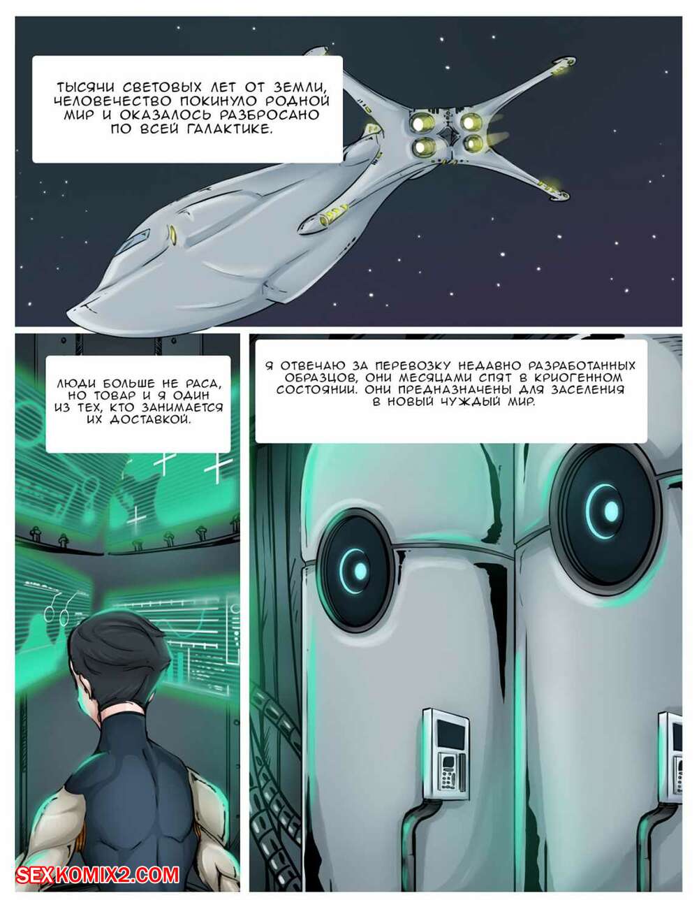 Порно комикс Космическая доставка Парень достал горячую красотку брюнетку из космического инкубатора. Как только она пришла в сознание, красотка достала большой хуй парня и стала у него сосать, после чего дала ему себя выебать.