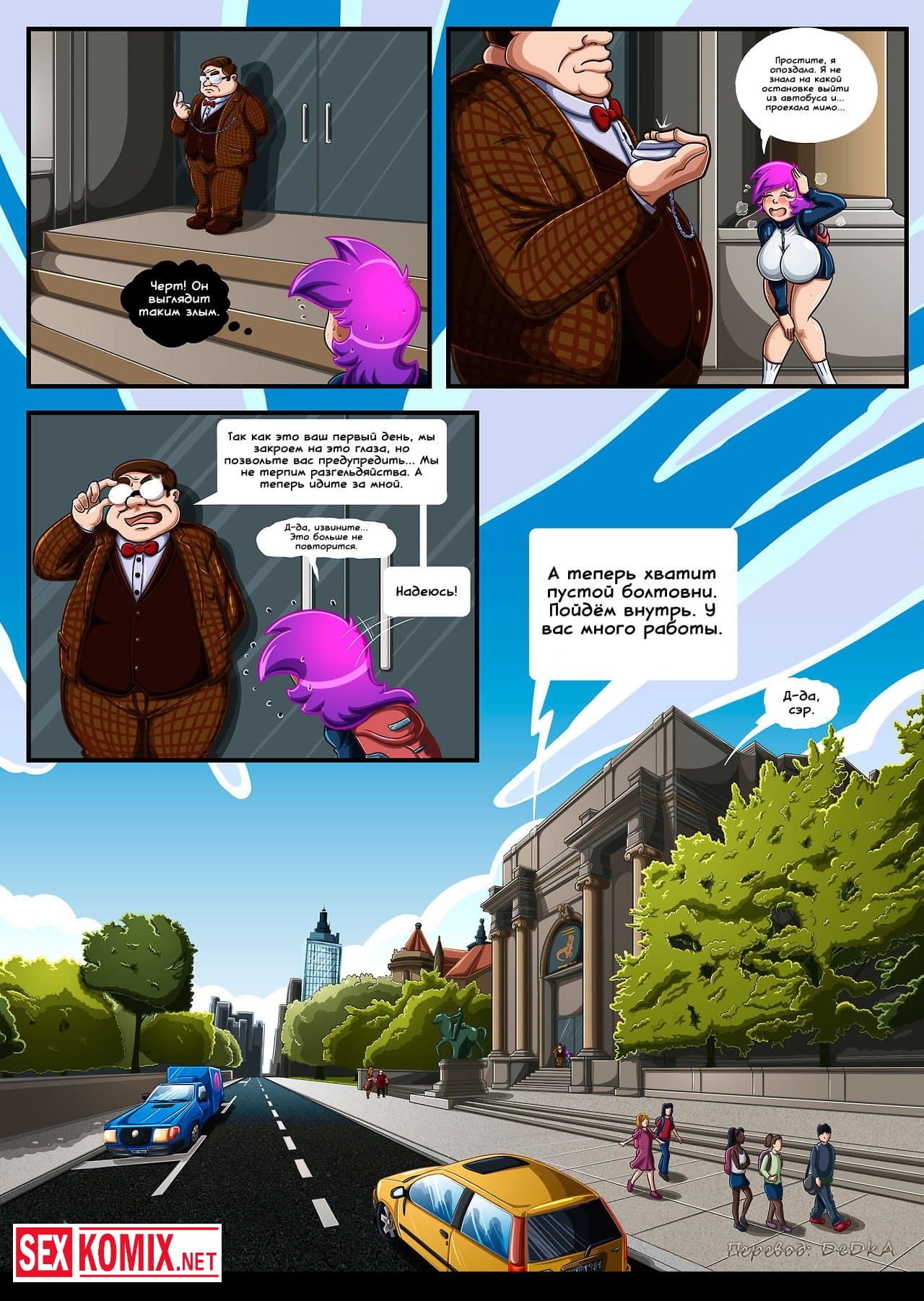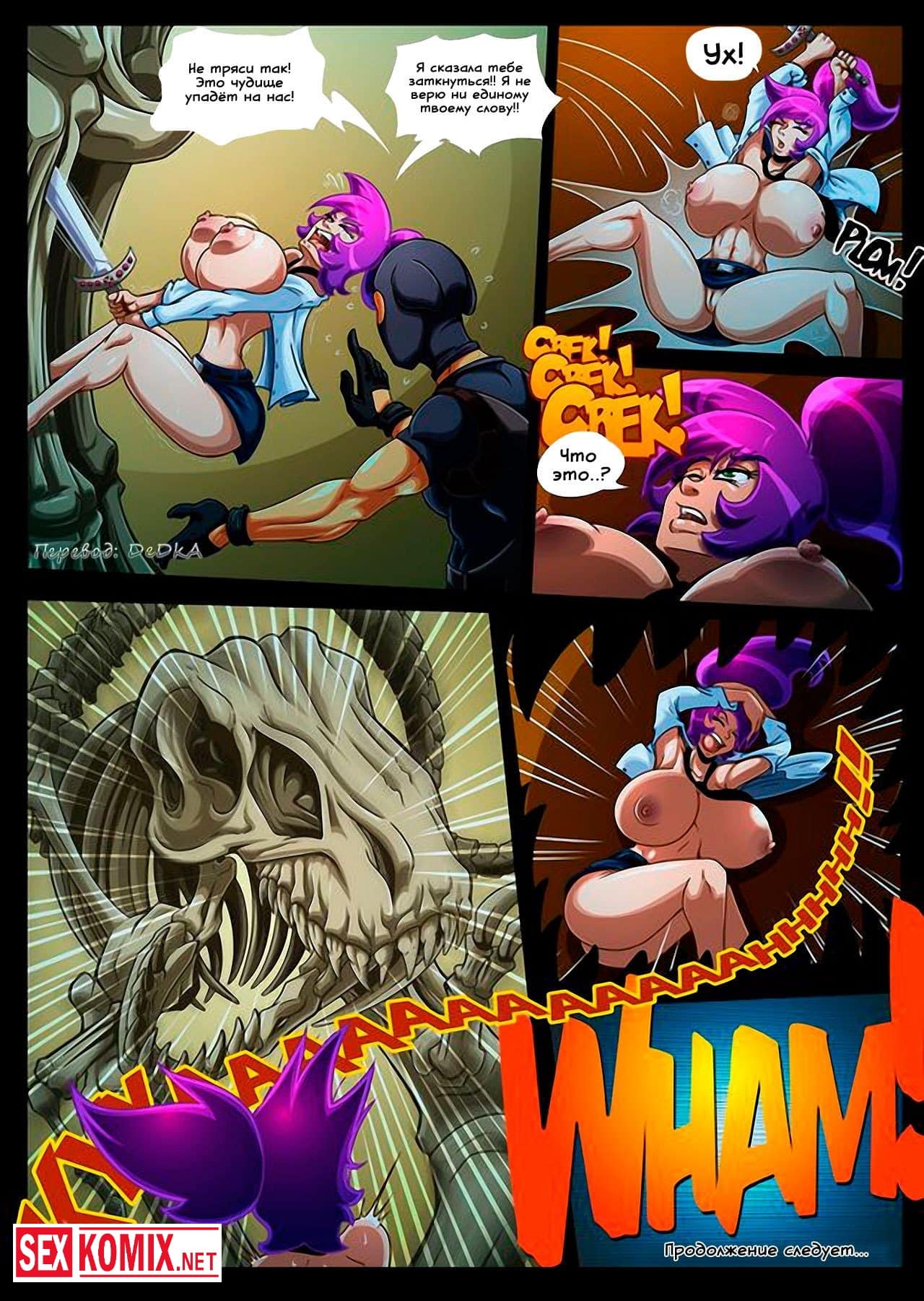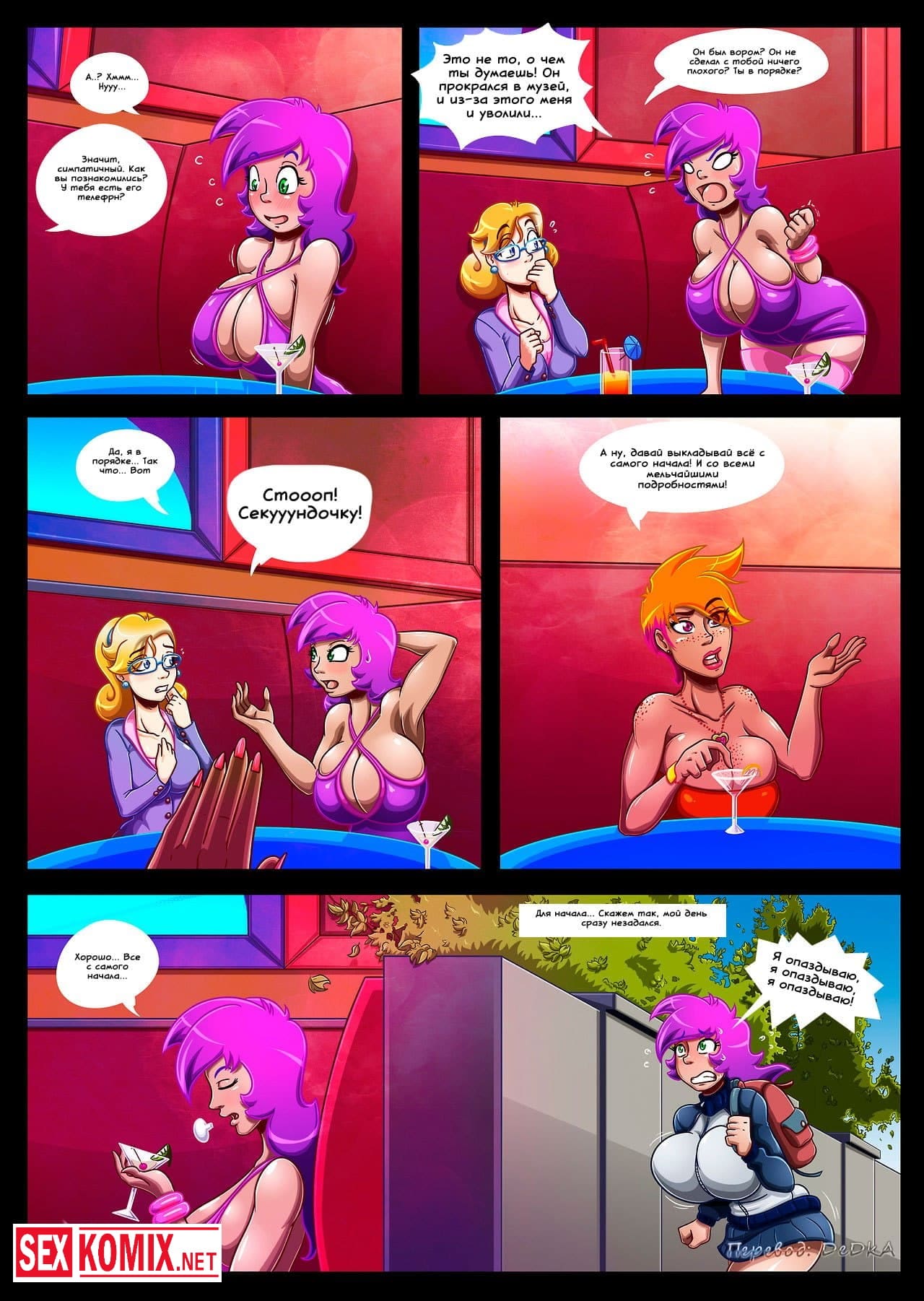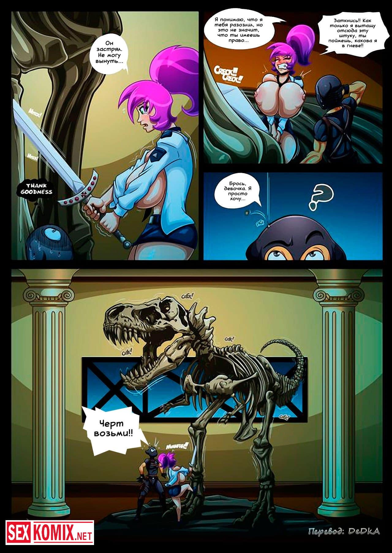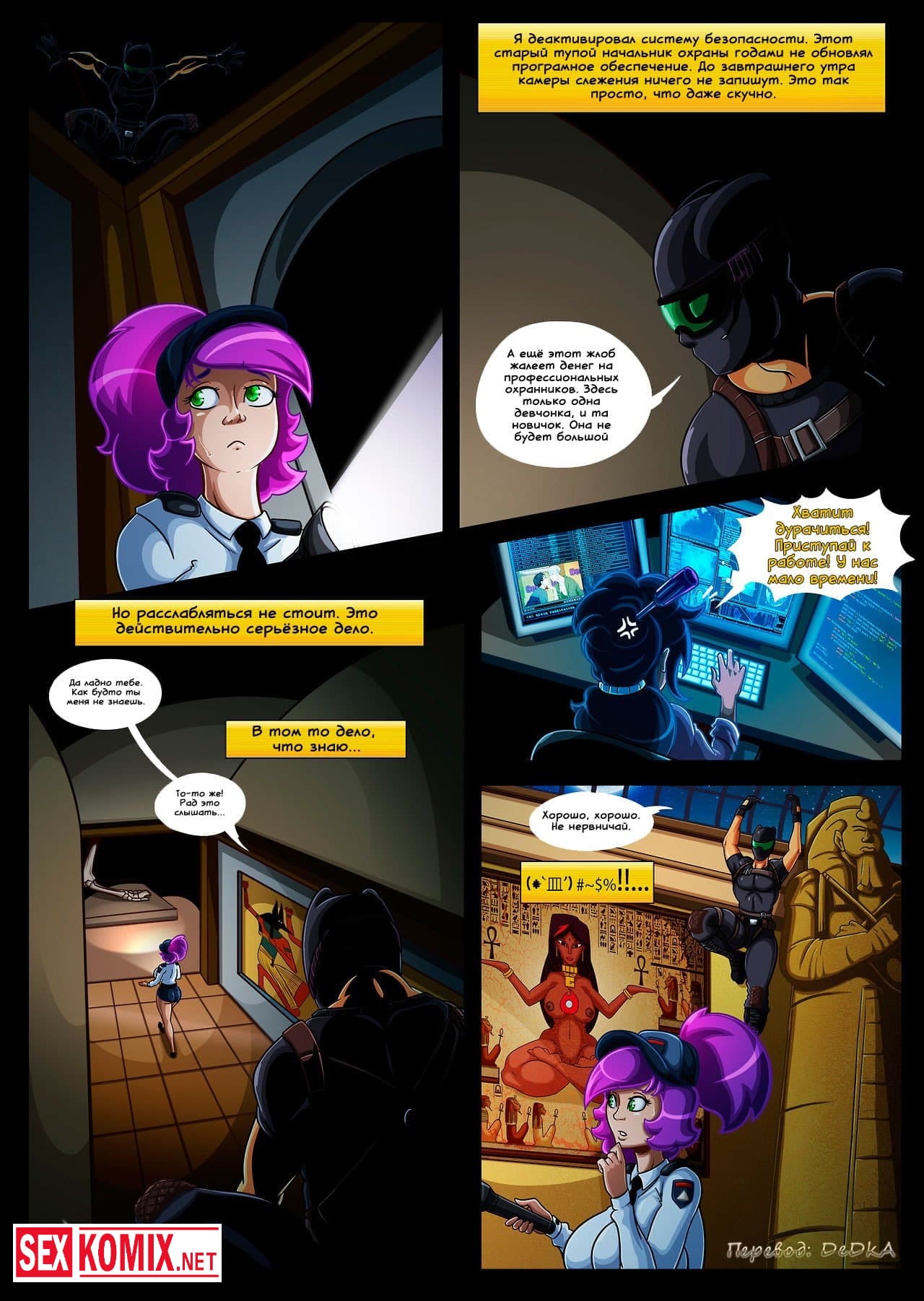 Порно комикс Цепная реакция. Сексуальную девушка с огромными сиськами достали все, на учебе и дома. Так же она работает охранницей, и это единственное место где девушка может побыть одна. Но в этоу смену на объект проник вор и напал на красотку. Когда парень почувствовал её пышную грудь, сразу возбудился и захотел её трахнуть. Девушка дала ему, она очень хотел почувствовать член внутри себя.
