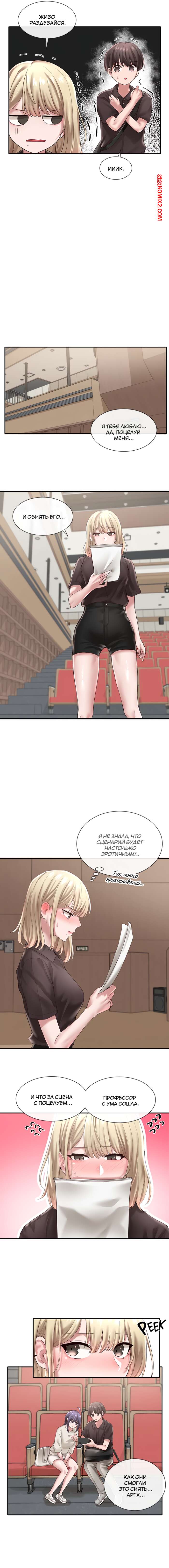 Порно комикс Театральный клуб. Части 43 и 44 и 45. Theater cociety Парень уединился с горячей сисястой красоткой блондинкой. Они оба были очень возбуждены и решили начать страстно целоваться, чтобы немного утолить свою возбуждение.