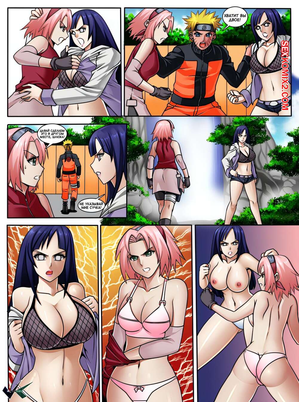 Порно комикс Наруто. Поединок куноичи. Naruto. Kunoichi Showdown. Jadenkaiba. Девушки ниндзя повздорили из-за парня и устроил настоящую битву.