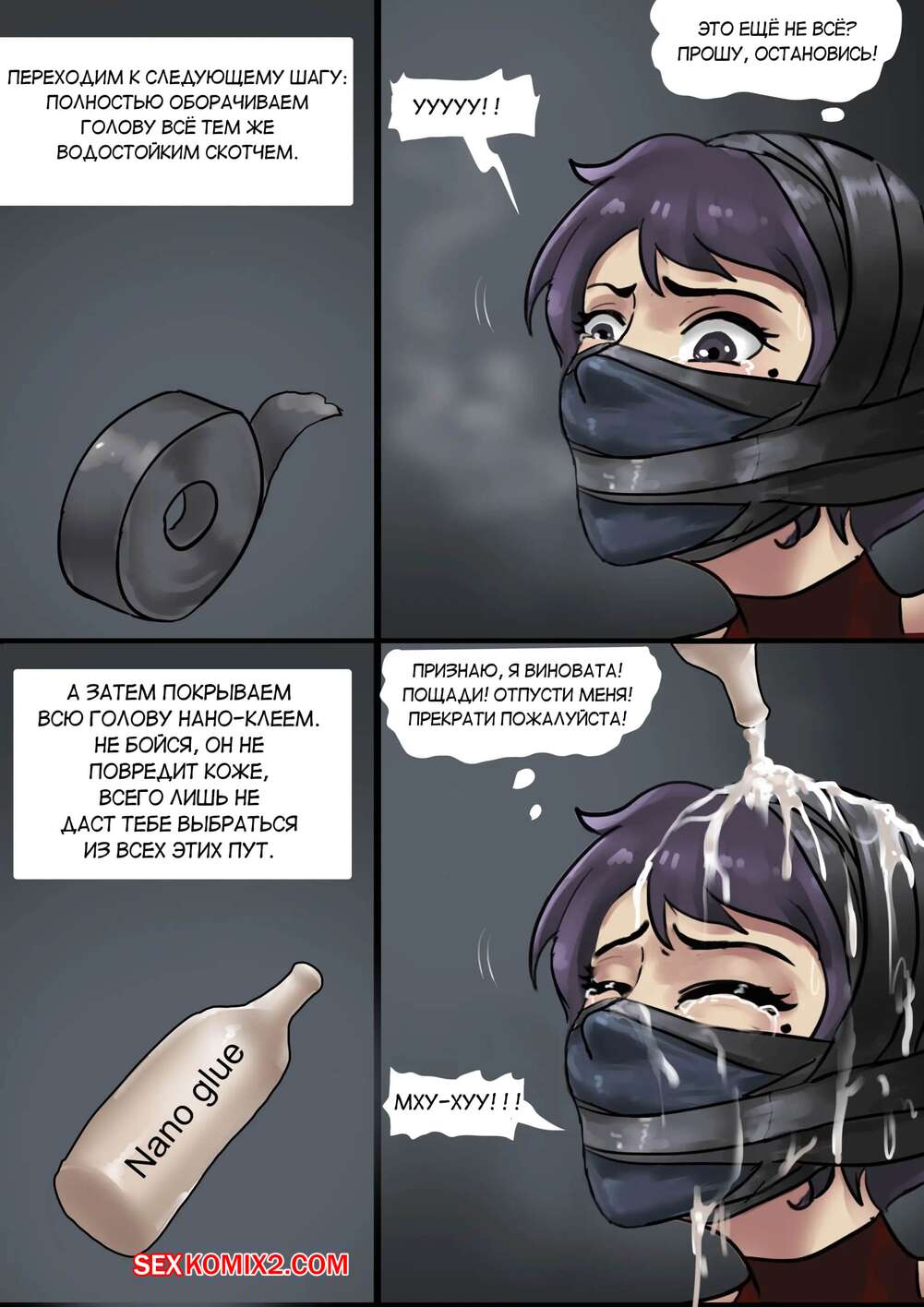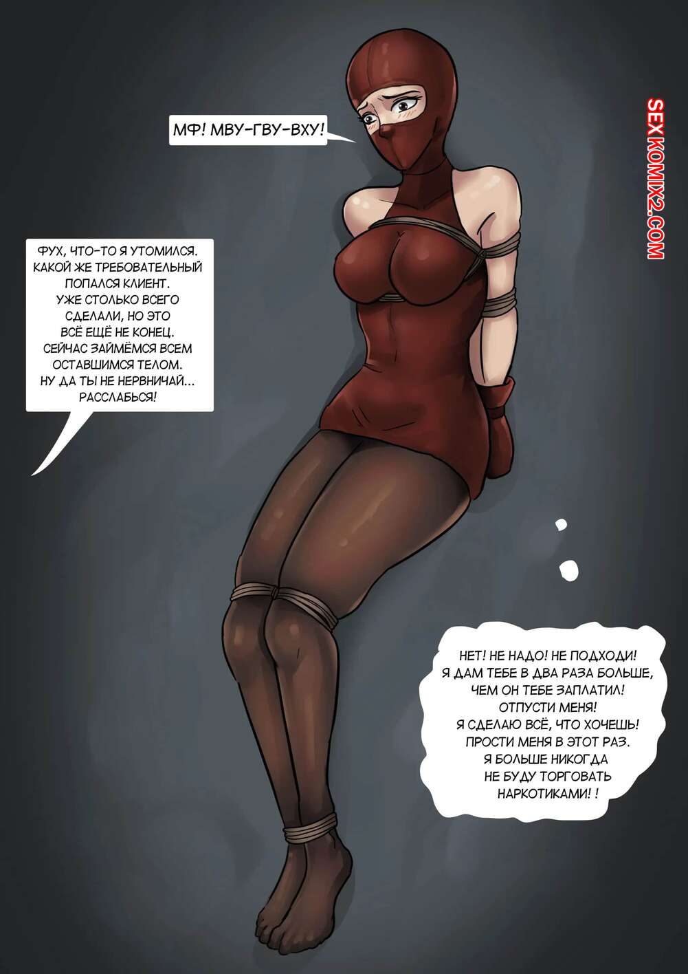 Порно комикс Красотка наркоторговка Горячую сисястую красотку брюнетку поймали за продажей наркотиков и решили ее наказать. Ее схватили и раздели, после чего связали ее и обмотали повязками, чтобы сделать из нее куклу.