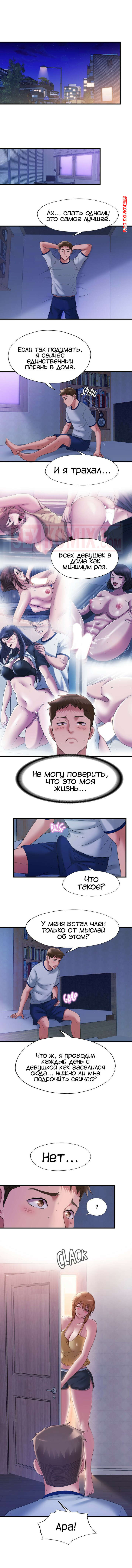 Порно комикс Жизнь бьет ключом. Часть 60. Water overflow Парень остался один в своей комнате и от мыслей о сексе со своими соседками у него встал хуй. Он думал подрочить, но к нему пришли две красотки, желающие заняться с ним групповой еблей.