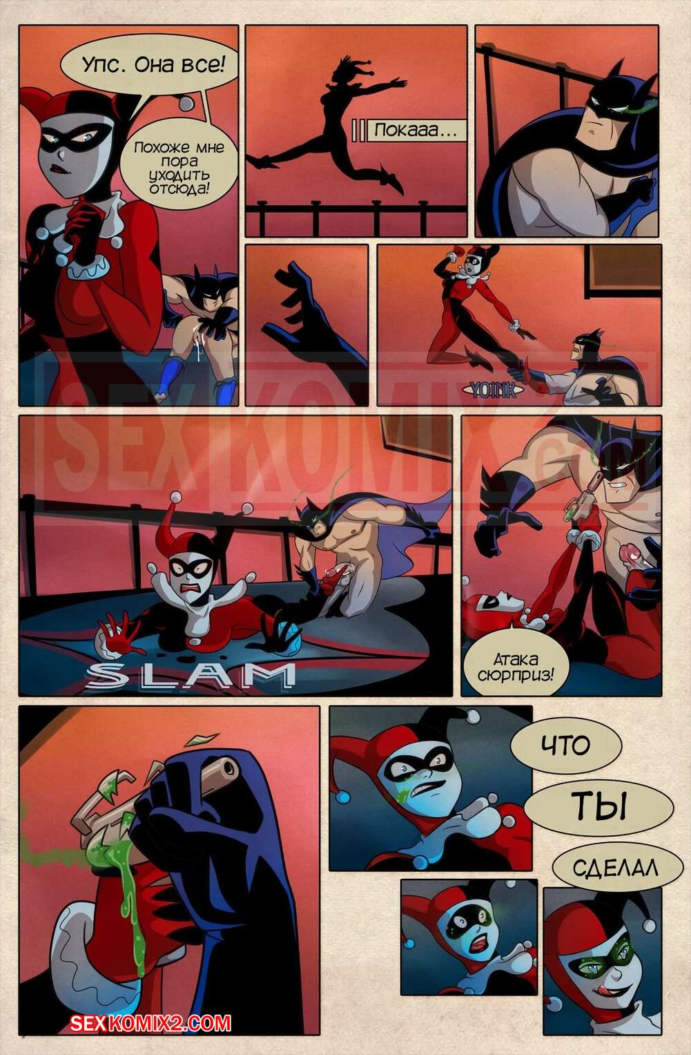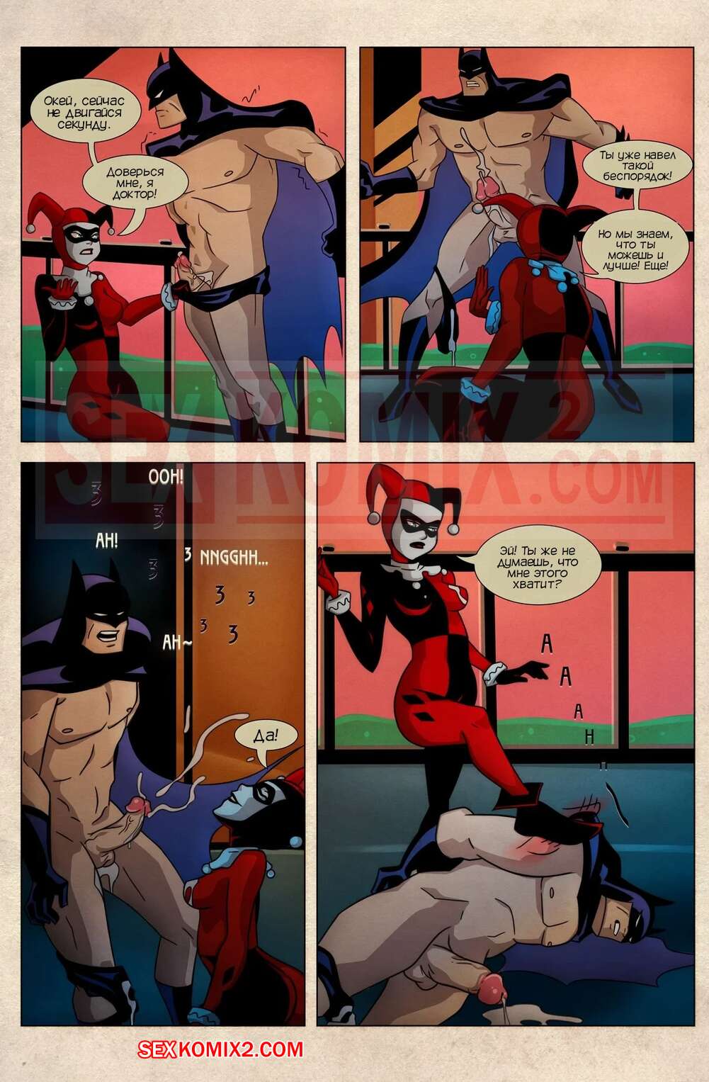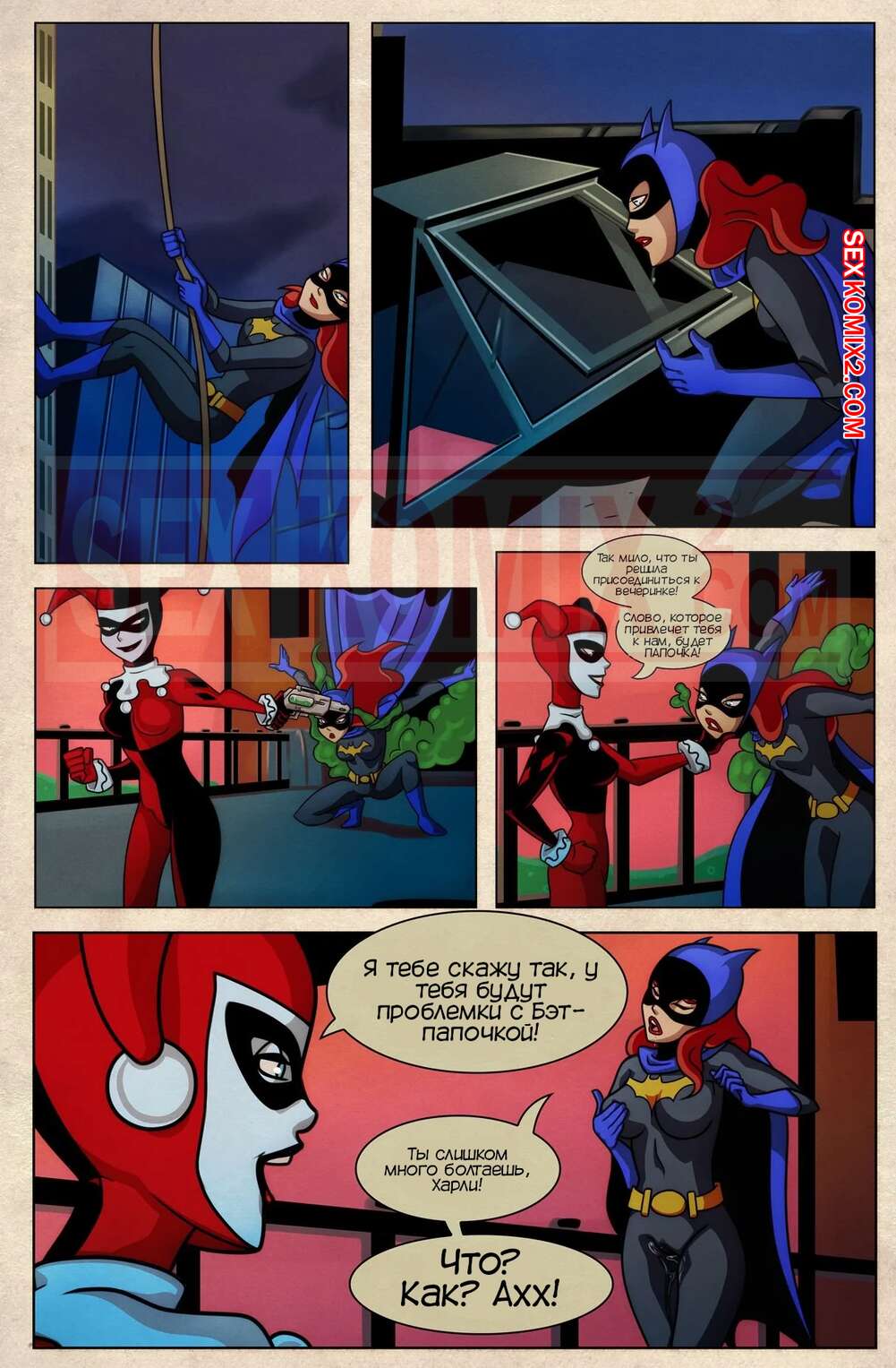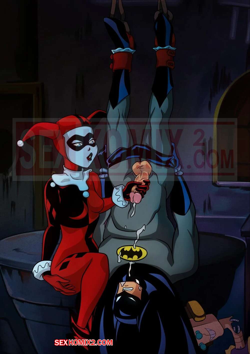 Порно комикс Трюки Харли. Harley Tricks. Elmrtev Красотка Харил Квин схватила Бэтмена и использовала на нее газ, с помощью которого она смогла управлять героем. Позже Харли также подействовала на Бэтгерл и в итоге герои потрахались.
