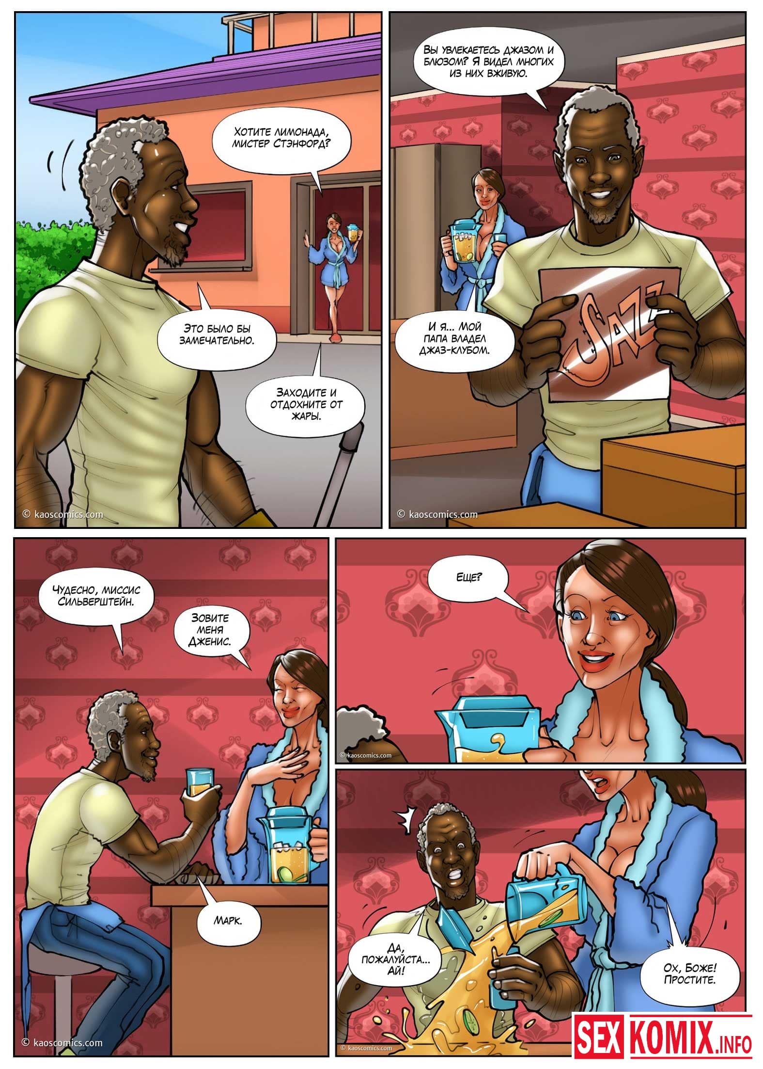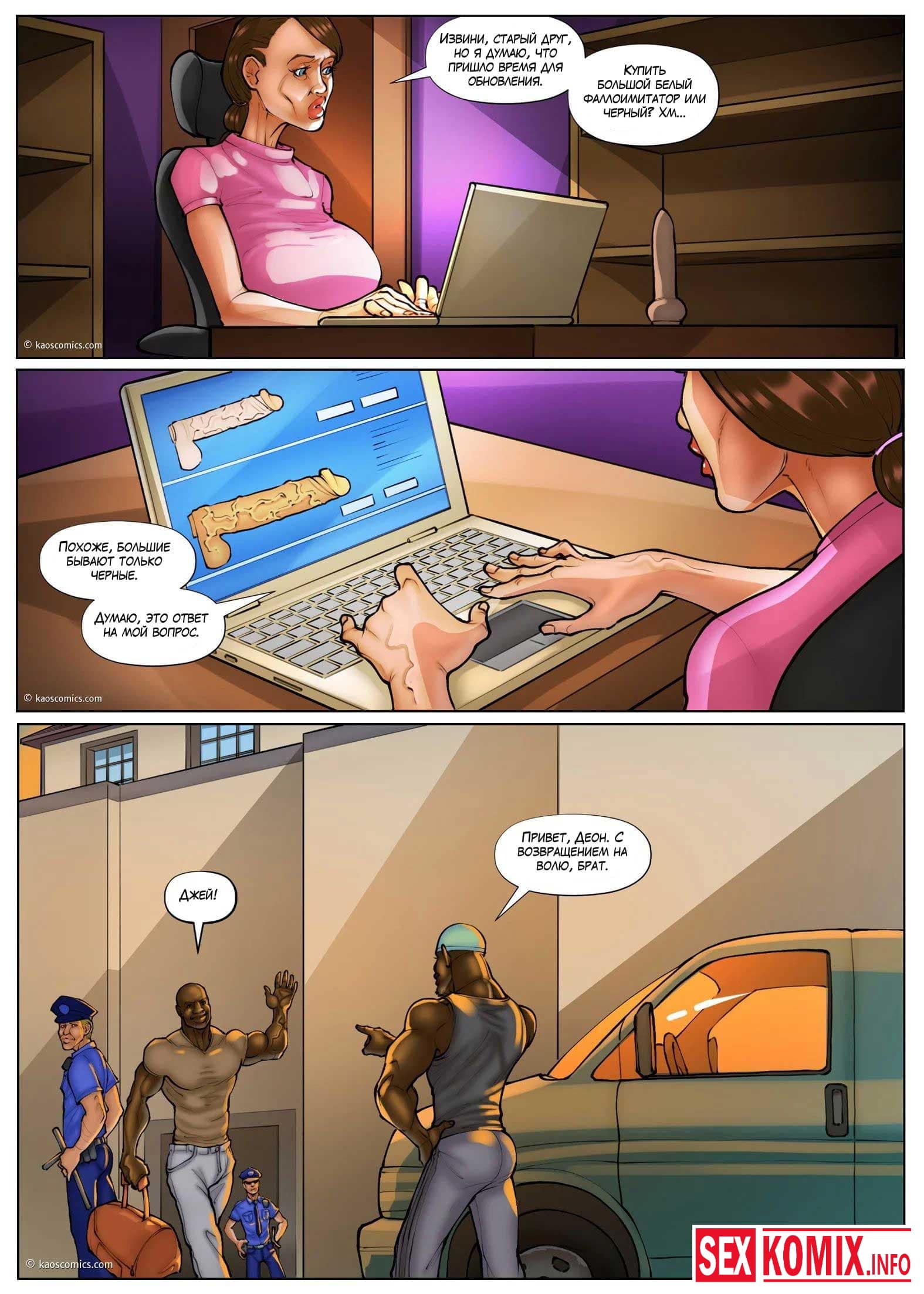 Порно комикс Белые жёны и чёрные садовники. Часть 3. Сексуальная девушка лежала на шезлонге в своем дворе и услышала какие-то стоны за забором. Она выглянули и сала свидетельницей как двое чернокожих садовников трахали хозяйку дома. Девушка возбудилась, пошла в дом достала свою секс игрушку и начала мастурбировать представляя себя на месте соседки.
